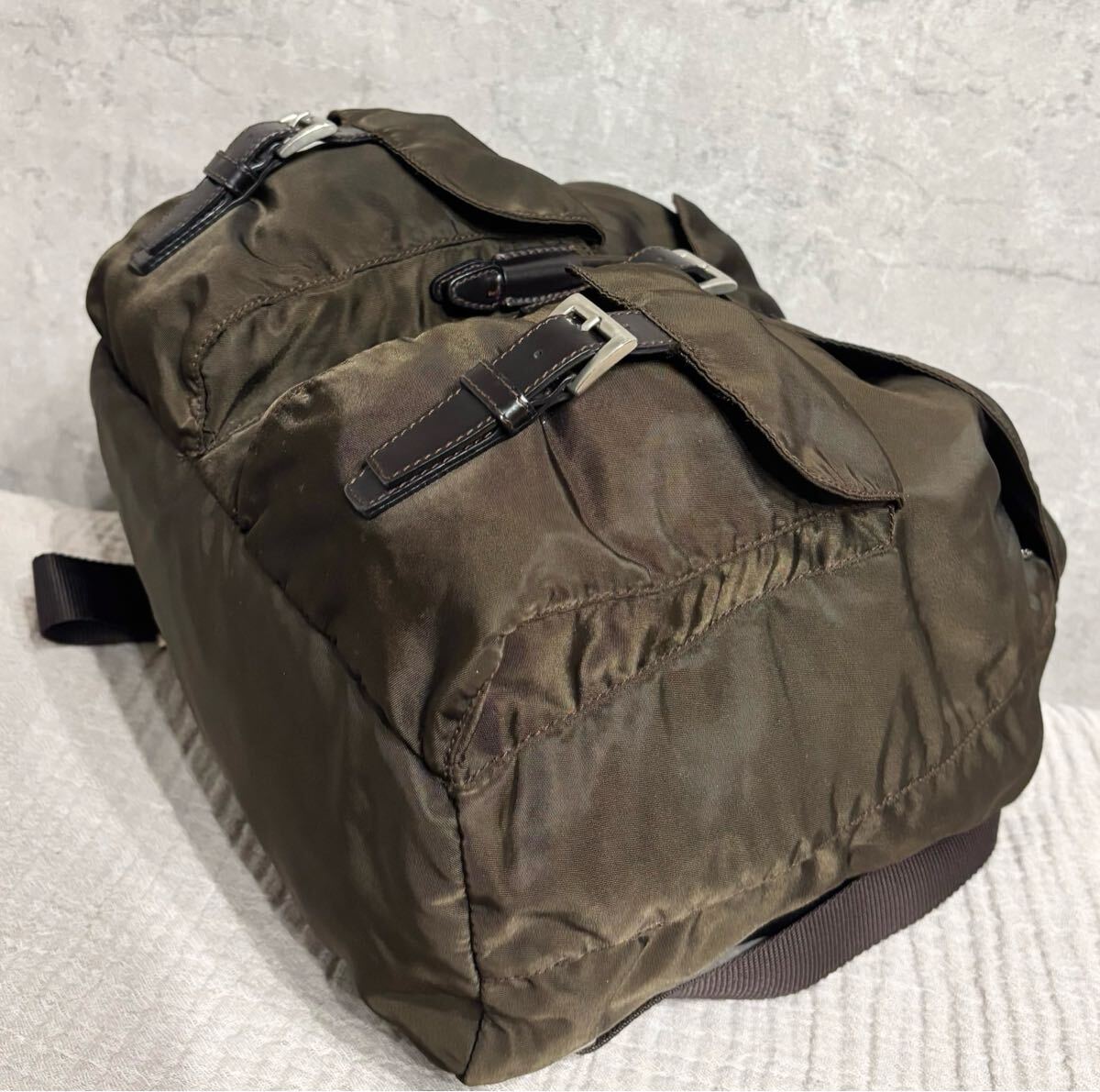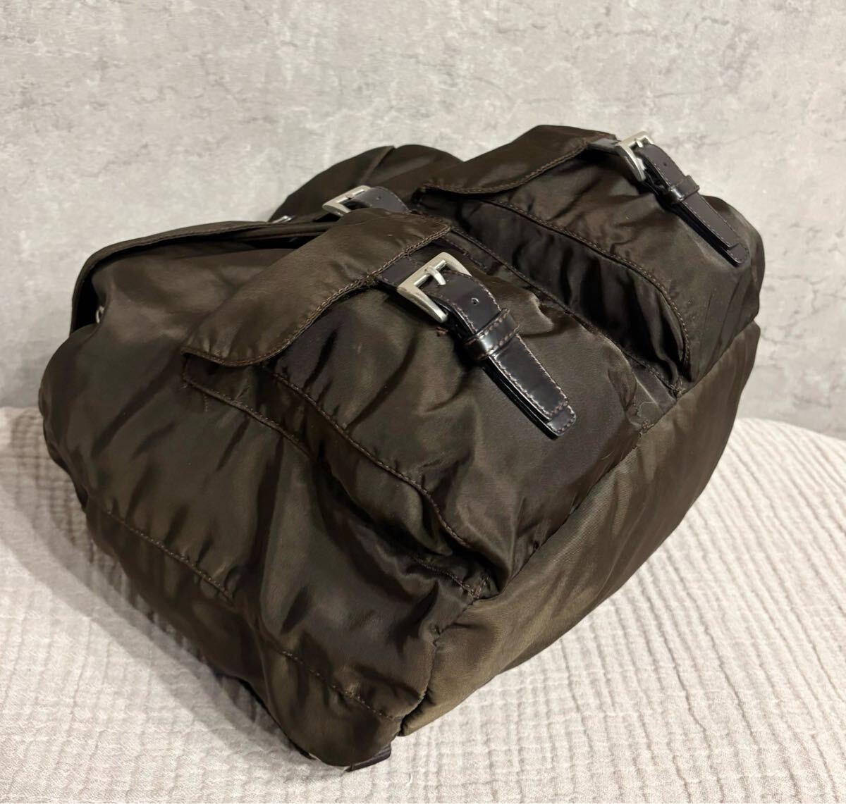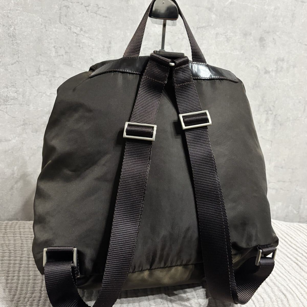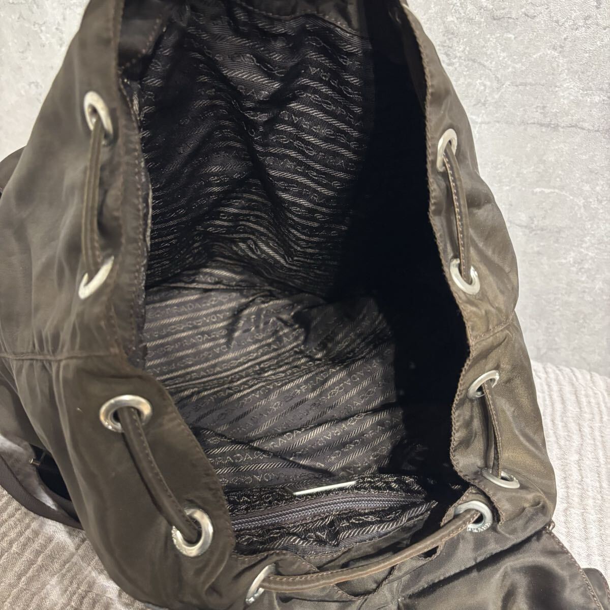 リュック ミニ バックパック ナイロン 巾着 茶色 ブラウン ロゴ プレート