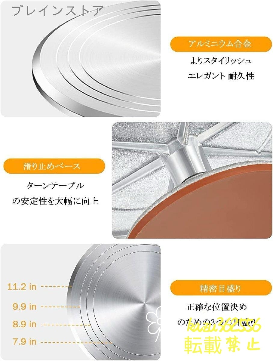□商品詳細 ★状態 :新品 ★カラー:画像参照 材質:アルミ合金 カラー:シルバー サイズ:約 310*310*11mm商品の説明 多用途 お菓子屋、喫茶店のパティシエさんに向けだけでなく、主婦と初心者にも適しています。自宅でベーキングを楽しみます。 安全性 食用レベルのアルミ合金を使って、無毒無害で安全です。心配なく自分で美味しいケーキを作れる喜びを感じます。 安定性 台座の底には滑り止めのゴムがついています。また、台座がより広くて、しっかりしているので荷重も増えました。何回も回転しても安定しています。 静かでスムーズに回転できます。お手入れが簡単です。 ■バリエーションが複数ある場合は、お好みのものを選ぶことが可能です。特にお申し付けがない場合は、商品画像1枚目のカラー、 またはタイトル記載の商品をお送り致します。