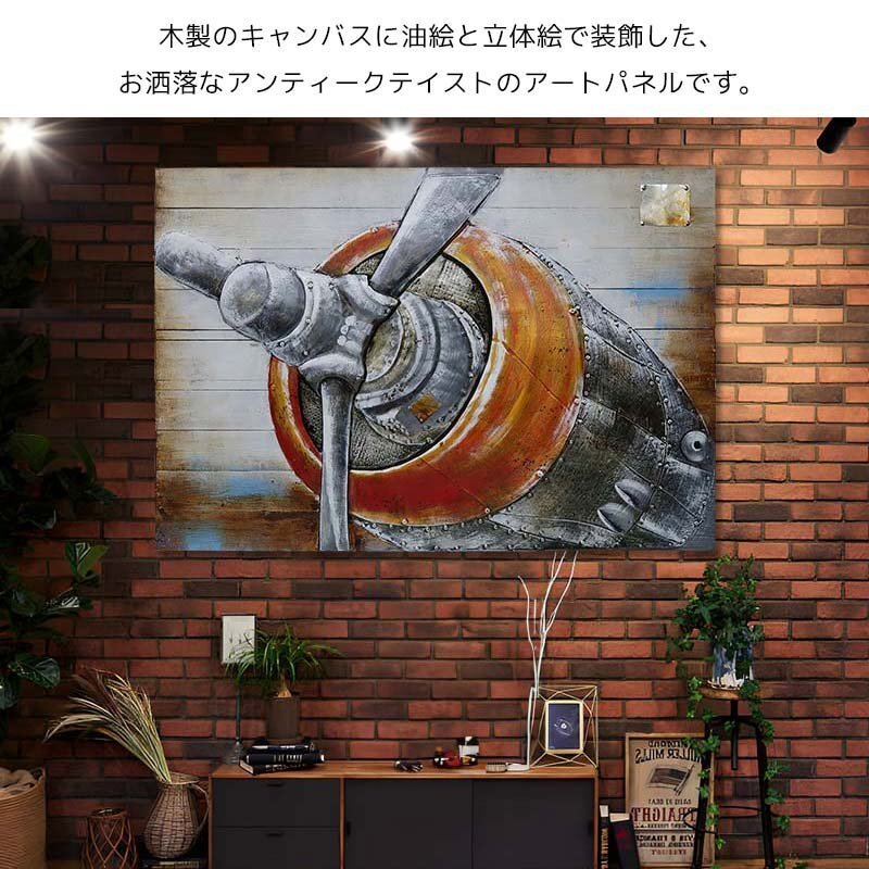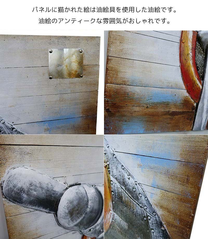 ![]() 木製のキャンバスに油絵と立体絵で装飾した、お洒落なアンティークテイストのアートパネルです。 プロペラはプラスチック製で木製のキャンバスに貼り付けられており存在感のある作りになっております。 一般的なアートパネルでは味わえない躍動感を感じて頂けます。 パネルに描かれた絵は油絵具を使用した油絵です。 油絵のアンティークな雰囲気がおしゃれです。 空間をオシャレに彩ります。自宅、カフェBARにも、 おすすめのインパクトあるデザインの木製アートパネルです。 フレーム部をひっかけるだけで画鋲などでも簡単に設置が可能。 商品詳細 サイズ(約):幅120cm*縦82cm*奥行5cm 重さ(約):5.3kg 素材 ・杉材(本体) ・油絵具 ・プラスチック(立体部分) ・プレート(アルミ) |