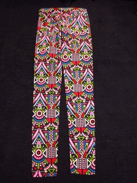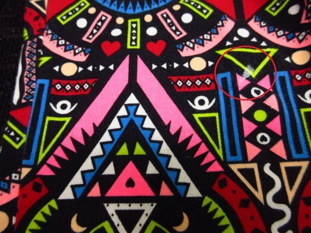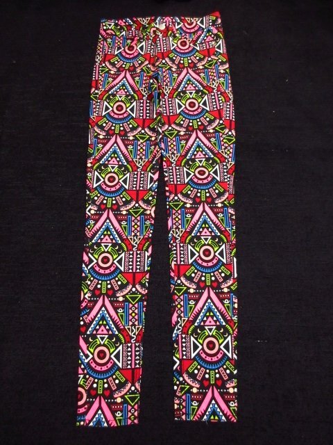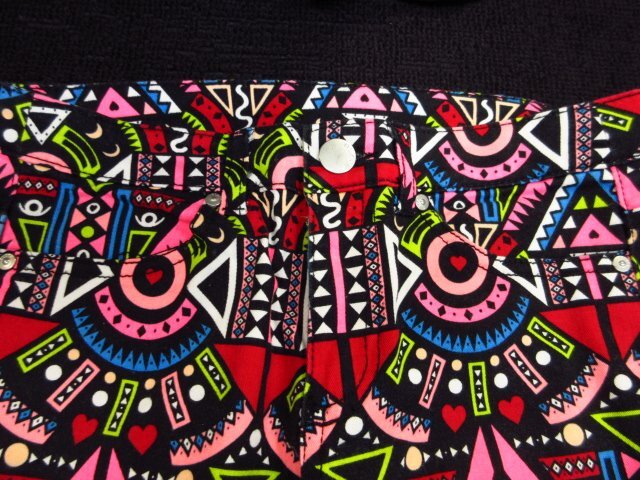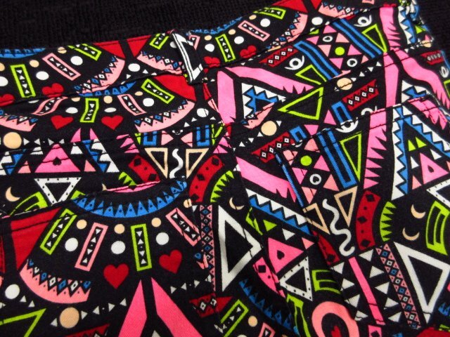 m4188 DIVIDED H&M 柄パンツ ズボン 黒×ピンク系 カラフル柄 総柄 幾何学模様 オルテガなど EUR:34 ストレッチ性あり