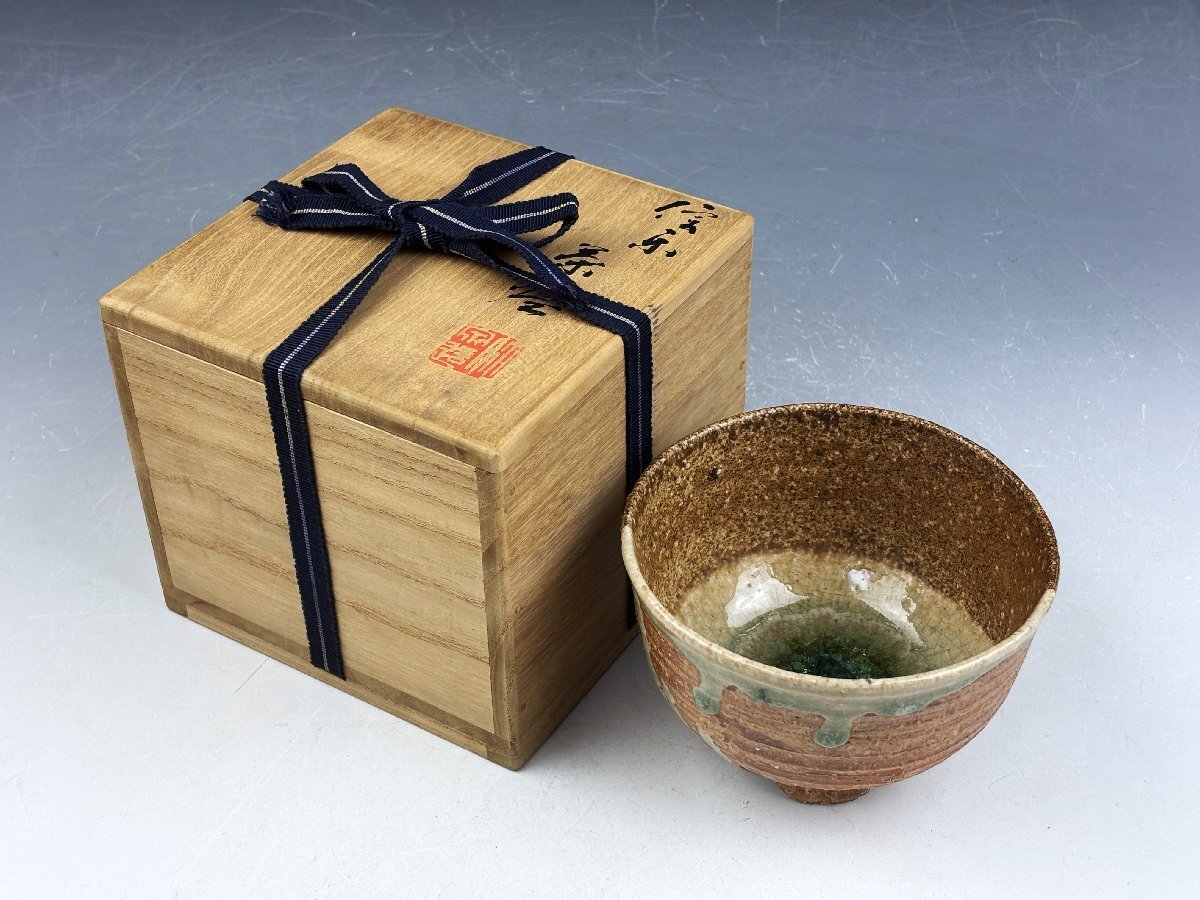 京焼 四代 三浦竹泉 ビードロ 十字割高台 信楽茶碗 抹茶碗 無傷 共箱 茶器 茶道具 和食器 清水焼 古陶磁器 古美術骨董品 VSI104