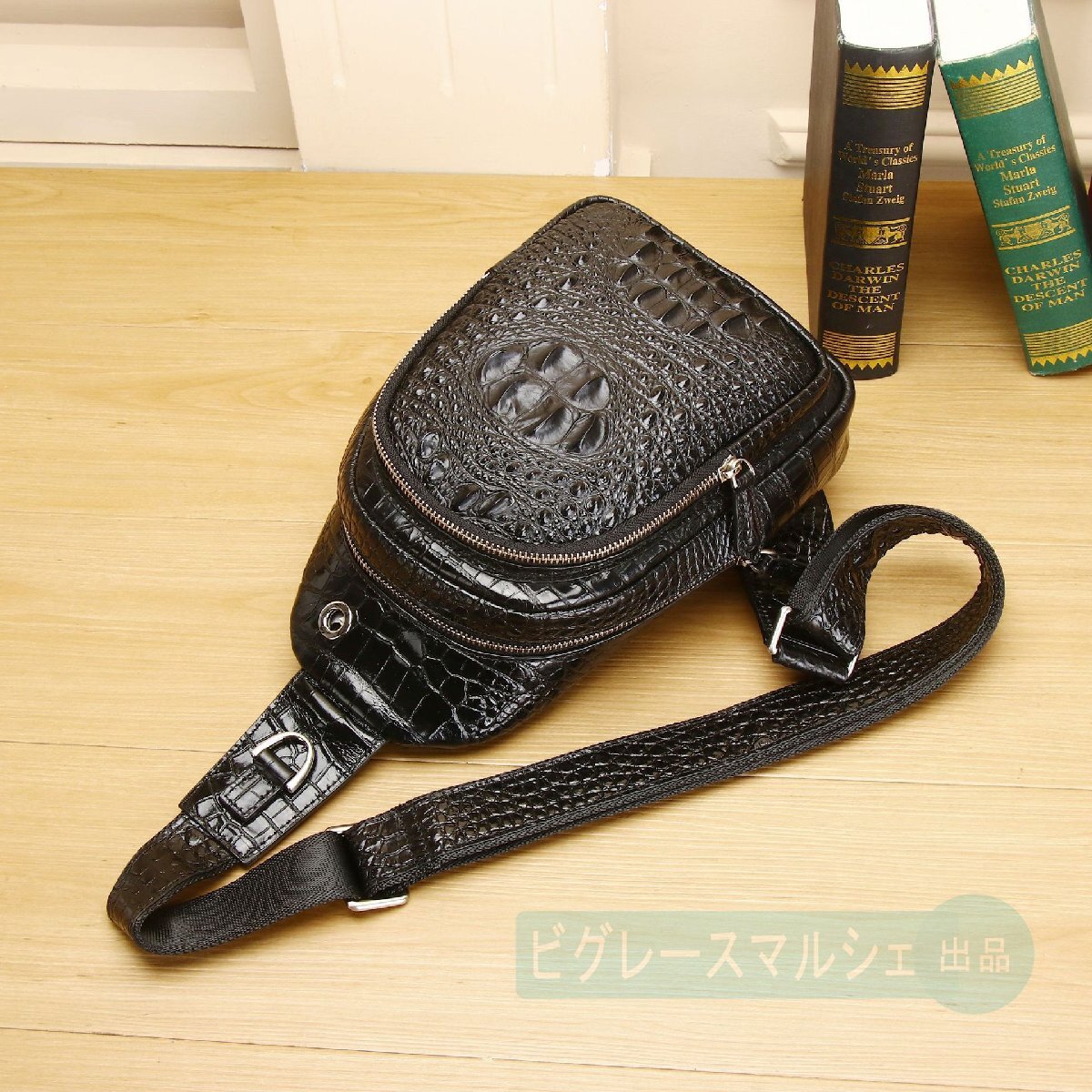 新品 クロコダイル本革 ワニレザー メンズバッグ 斜め掛け ボディバッグ 大容量 本革 センター取り アウトドア スリングバッグ hw1424
