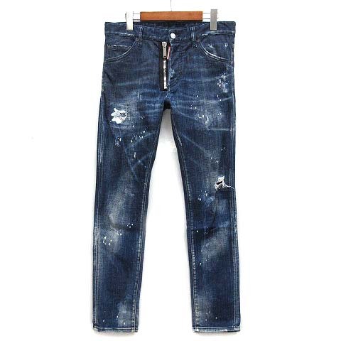 ディースクエアード DSQUARED2 ダメージ リペア スリム ストレッチ デニムパンツ クールガイジーンズ Cool Guy Jeans S74LB0836 2021SS 46