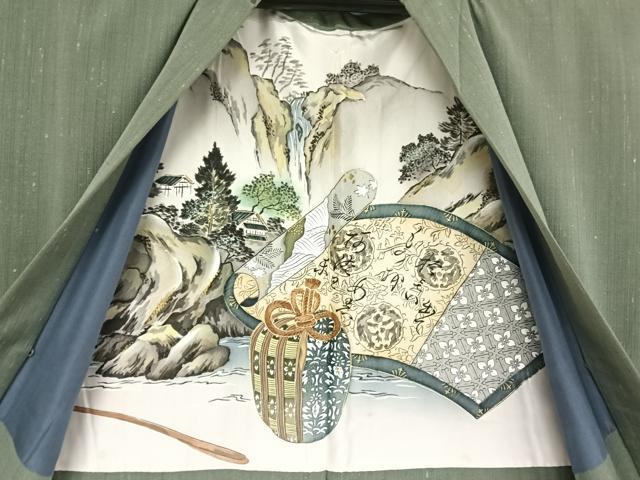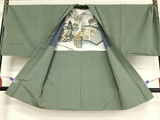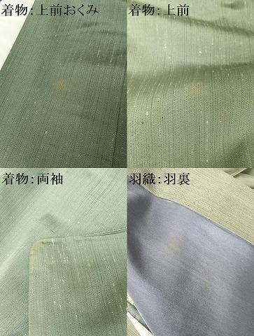 | 【正絹】 着物の状態は接写画像のように上前おくみ・上前・両袖に薄い汚れがございますが その他特に目立ったシミ汚れなどもなく大変良い状態です。 羽織の状態は接写画像のように羽裏に薄い汚れがございますが その他特に目立ったシミ汚れなどもなく大変良い状態です。 大変上質な逸品になります。 お安く出品致しますので、是非この機会にいかがでしょうか?