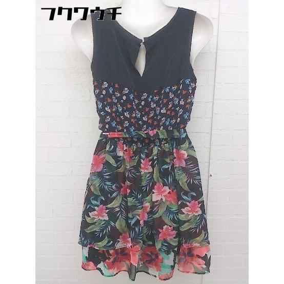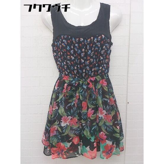 ◇ ◎ LOVELESS ラブレス ウエストリボン付き 総柄 ノースリーブ ミニ ワンピース サイズ36 ブラック系 レディース