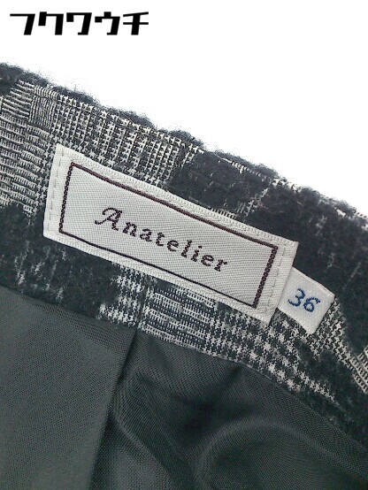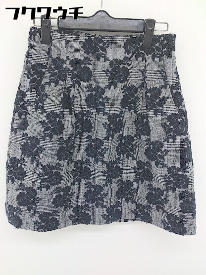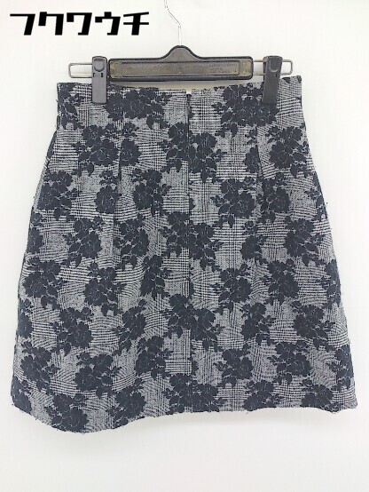 ◇ anatelier アナトリエ 花柄 チェック 膝丈 フレア スカート サイズ36 ブラック グレー レディース