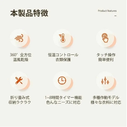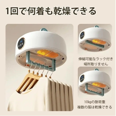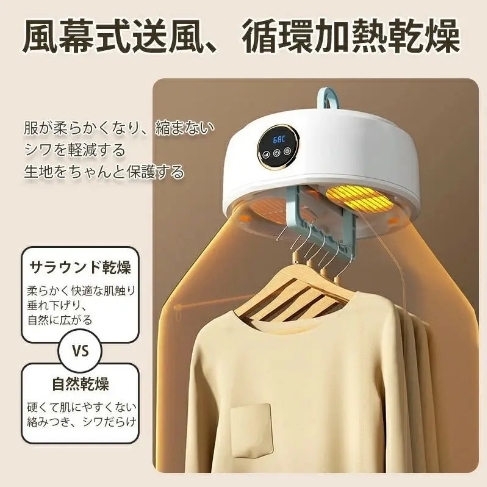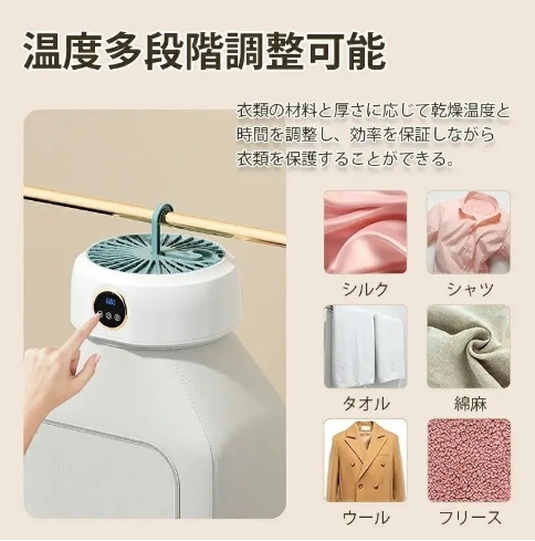 • 【各種生地に優しい】: 乾燥機は、シルク、ベルベット、シャツなど、さまざまな生地を乾燥できます。均一な熱分布と調整可能な温度設定を提供し、過度の熱による衣類の損傷を防ぎます、除菌機能も付いています。繊細な衣類は安全で丁寧に扱われます。