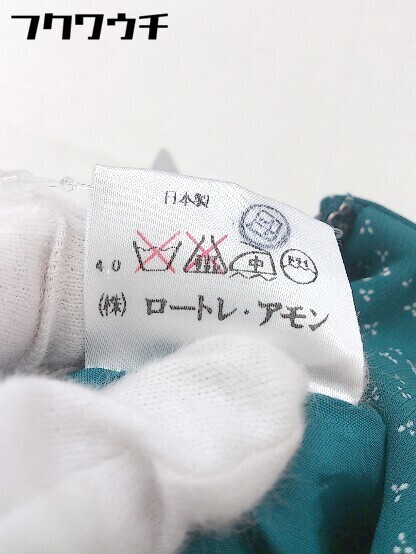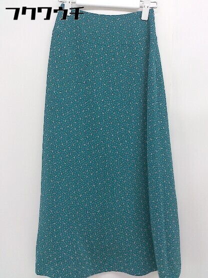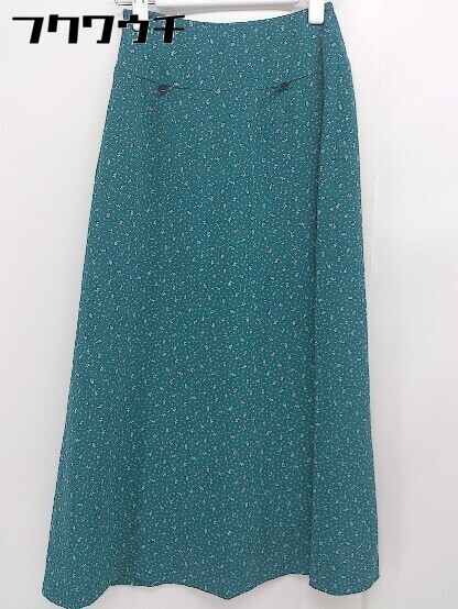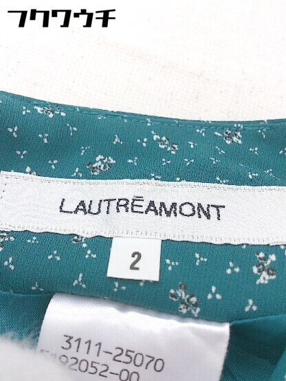 ◇ LAUTREAMONT ロートレアモン サイドジップ 総柄  膝下丈 フレア スカート サイズ2 グリーン ホワイト レディース