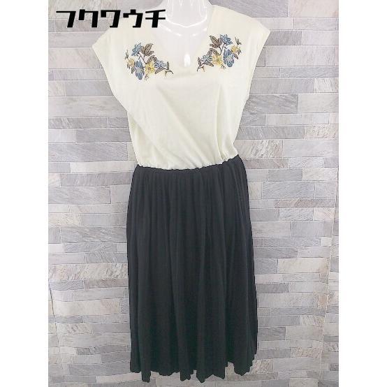 ◇ OZOC オゾック 刺繍 ノースリーブ ロング ワンピース サイズ38 アイボリー ブラック レディース