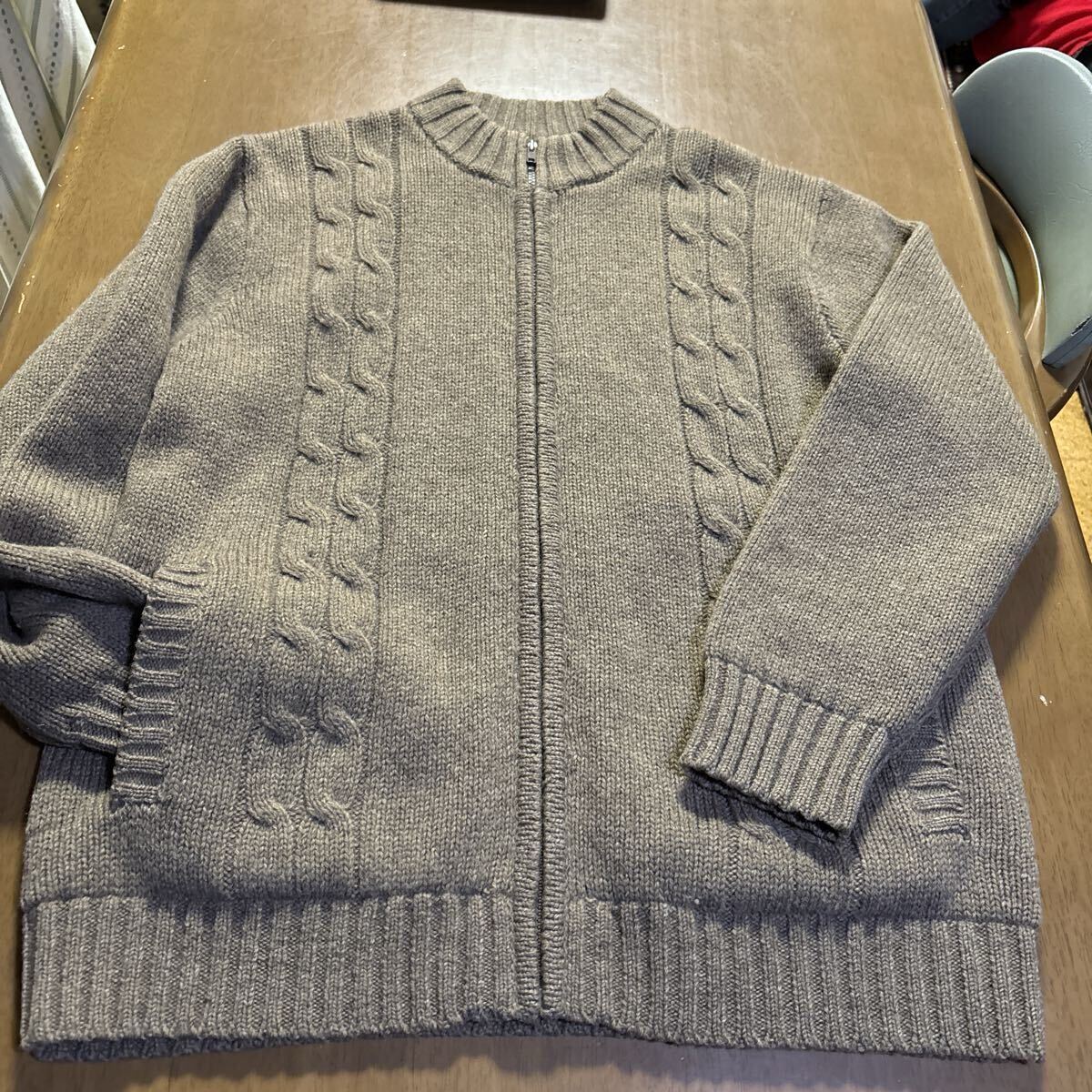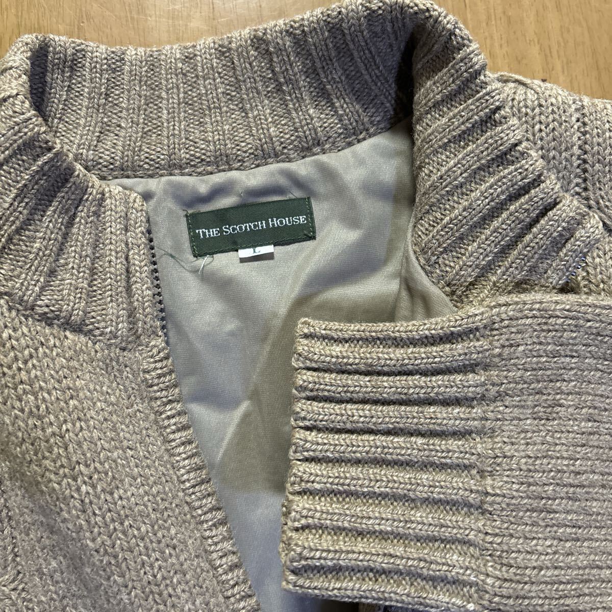 THE SCOTCH HOUSE ㈱三陽商会 羊毛100% 緑茶色ケーブル編みニットジャンパー
