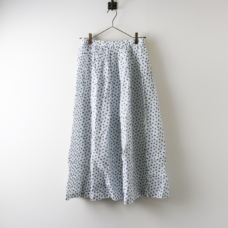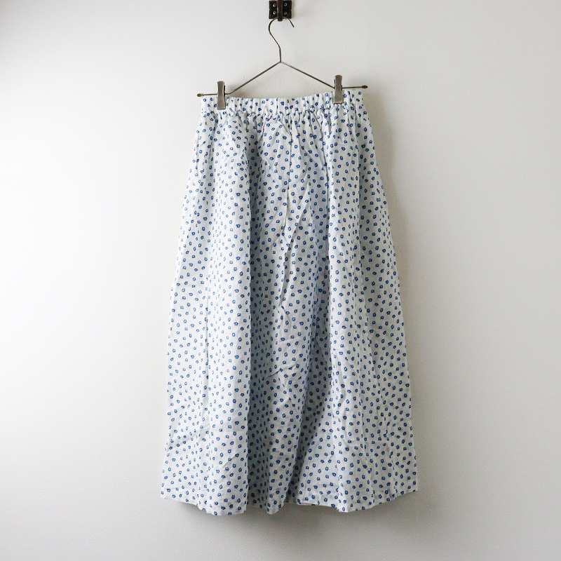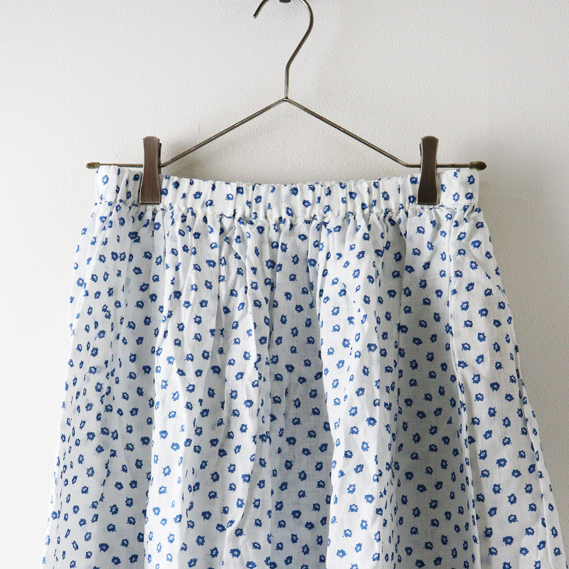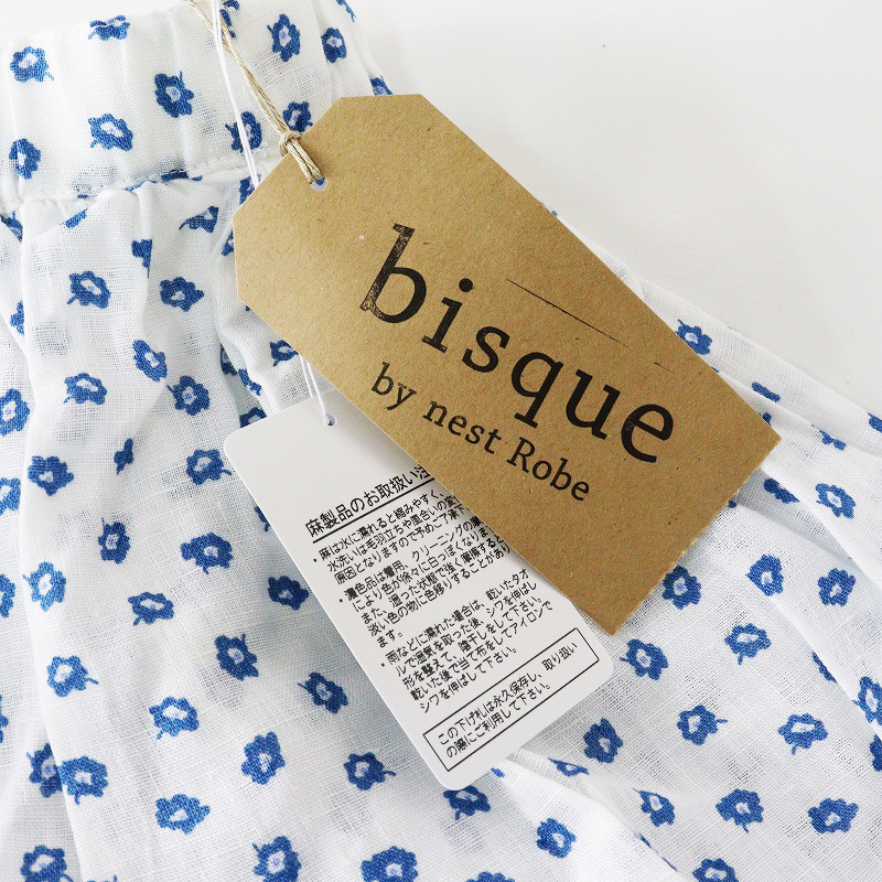未使用 保管品 ビスクバイネストローブ bisque by nest Robe 小花柄 リネンギャザースカート F\ホワイト フレア ゴム【2400014710328】