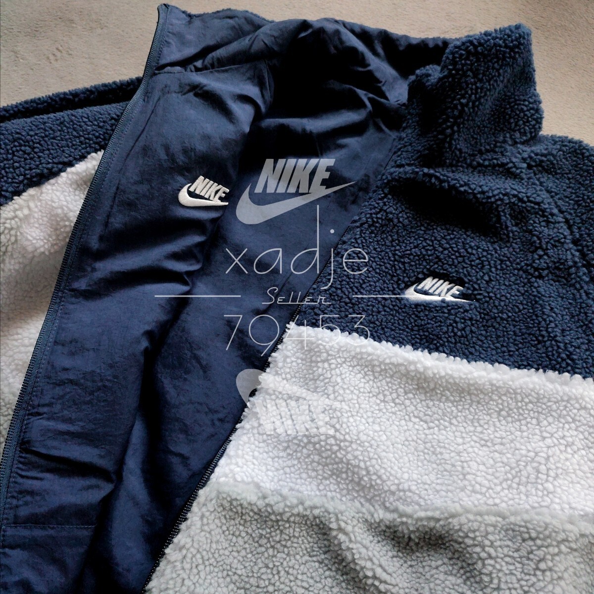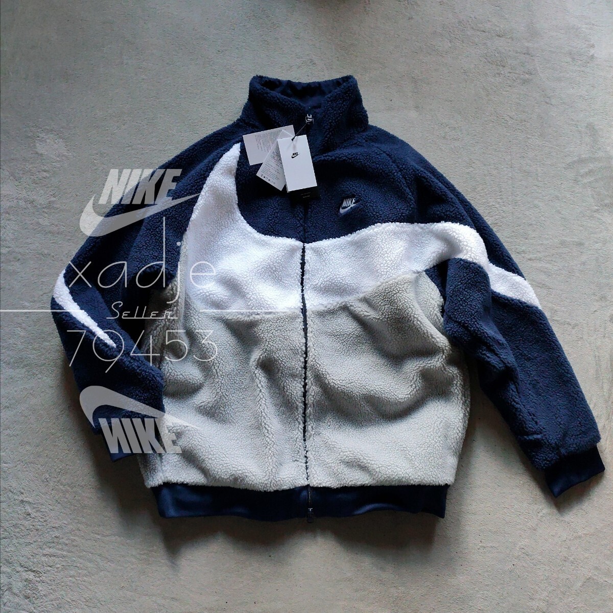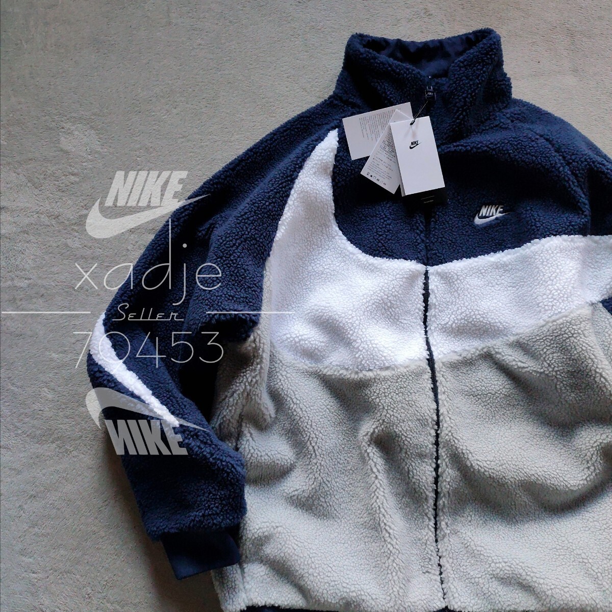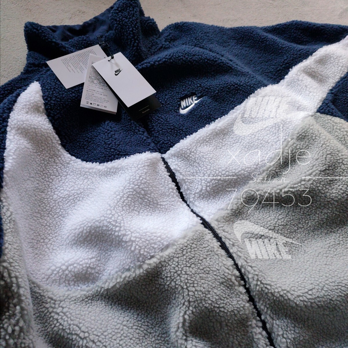 新品 正規品 NIKE ナイキ BIG SWOOSH 両面 ビッグスウッシュ リバーシブル ボアジャケット 紺 白 グレー 防寒 厚手 2WAY 定価17380円 2XL