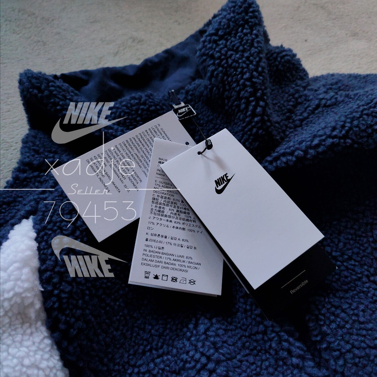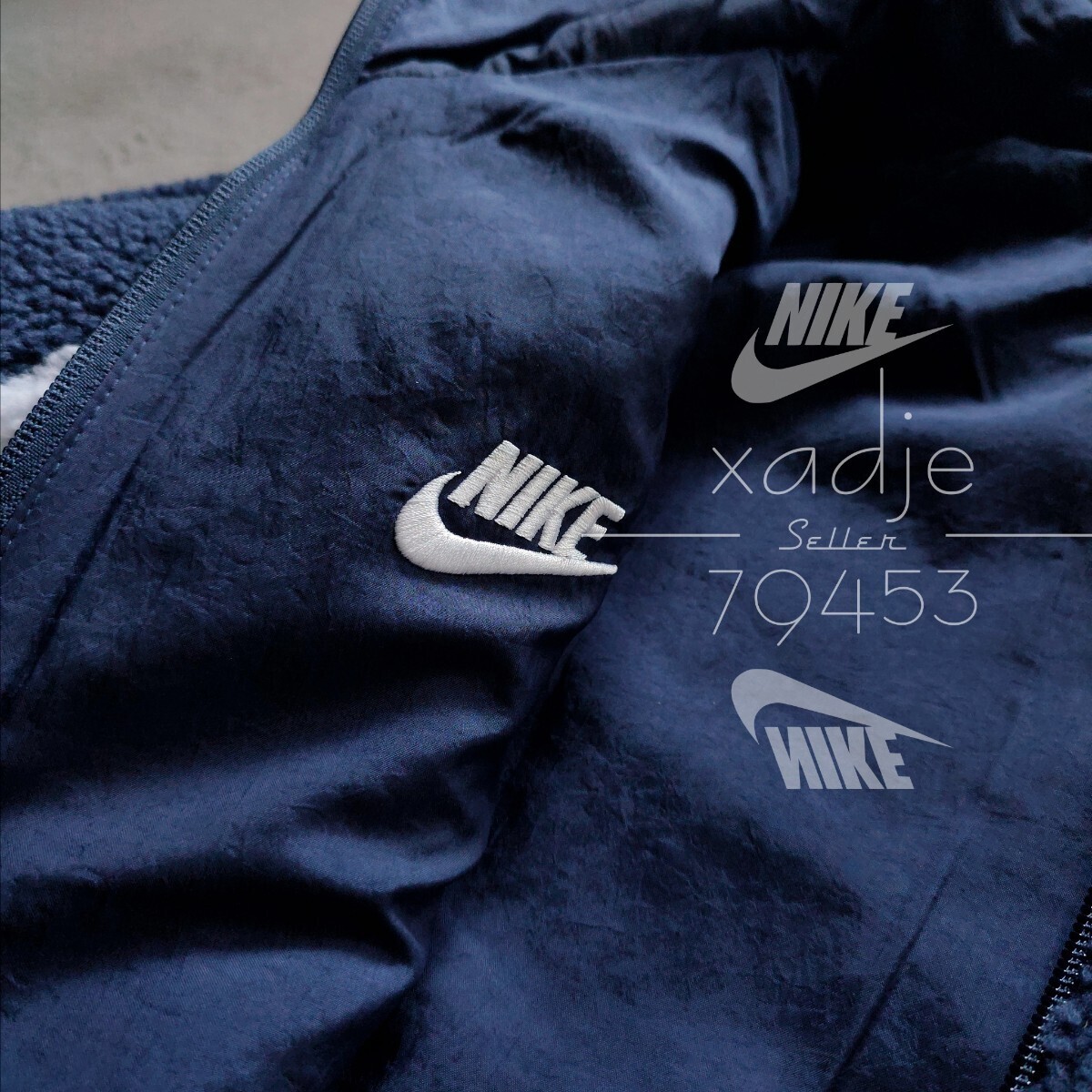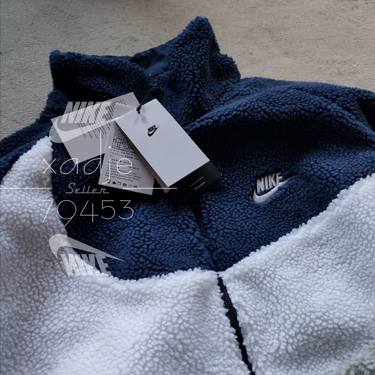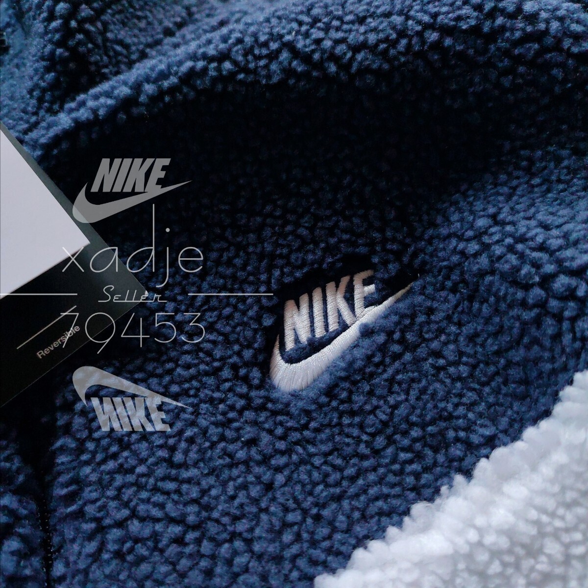 新品 正規品 NIKE ナイキ BIG SWOOSH 両面 ビッグスウッシュ リバーシブル ボアジャケット 紺 白 グレー 防寒 厚手 2WAY 定価17380円 2XL