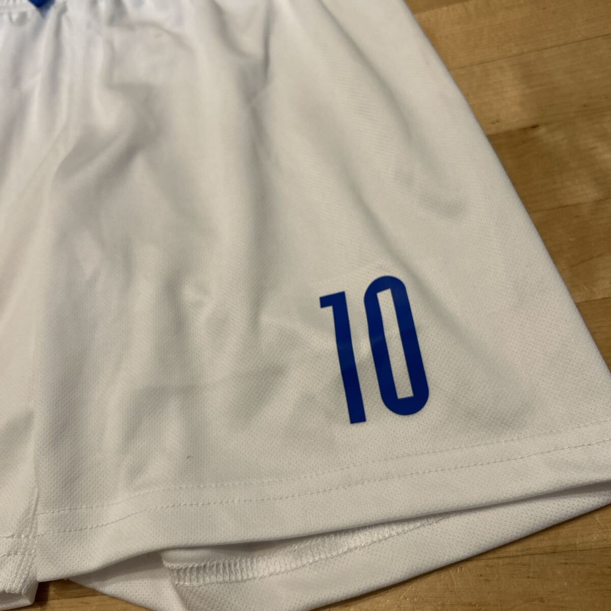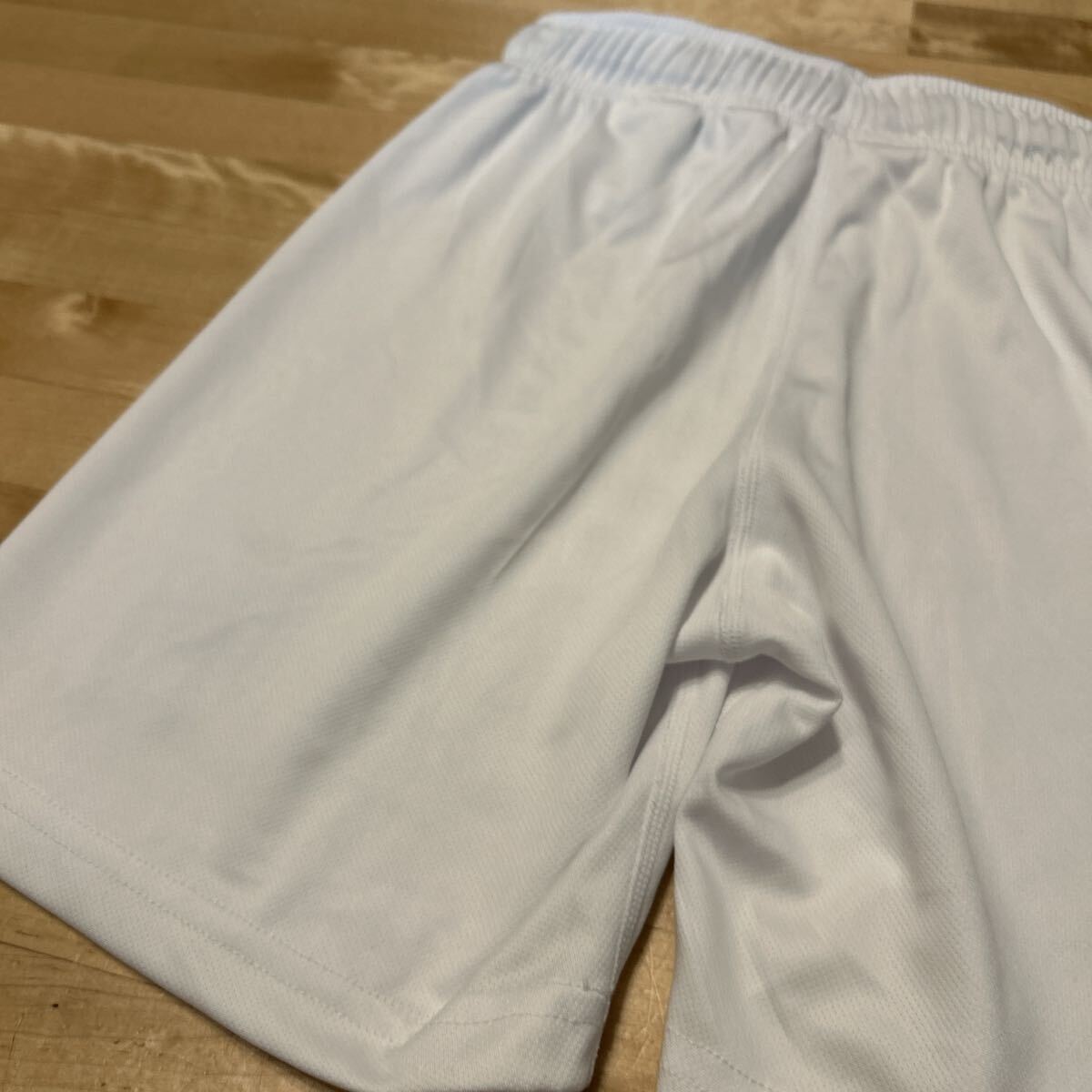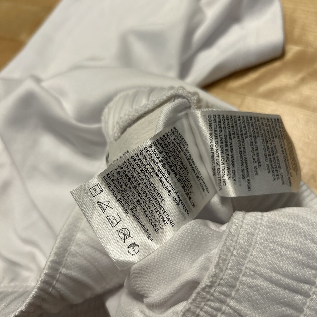 シンプルなホワイトのハーフパンツ、10番の番号入り。試着のみの未使用品です。最後の写真の通りのようなものがありました。他は全体的にきれいです。