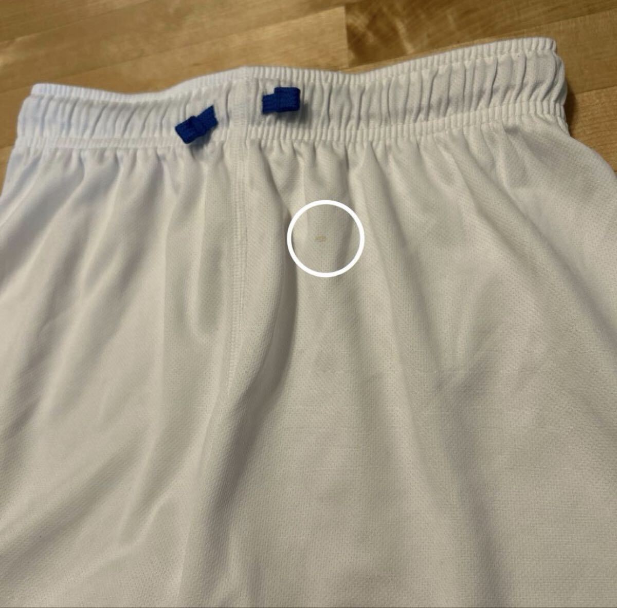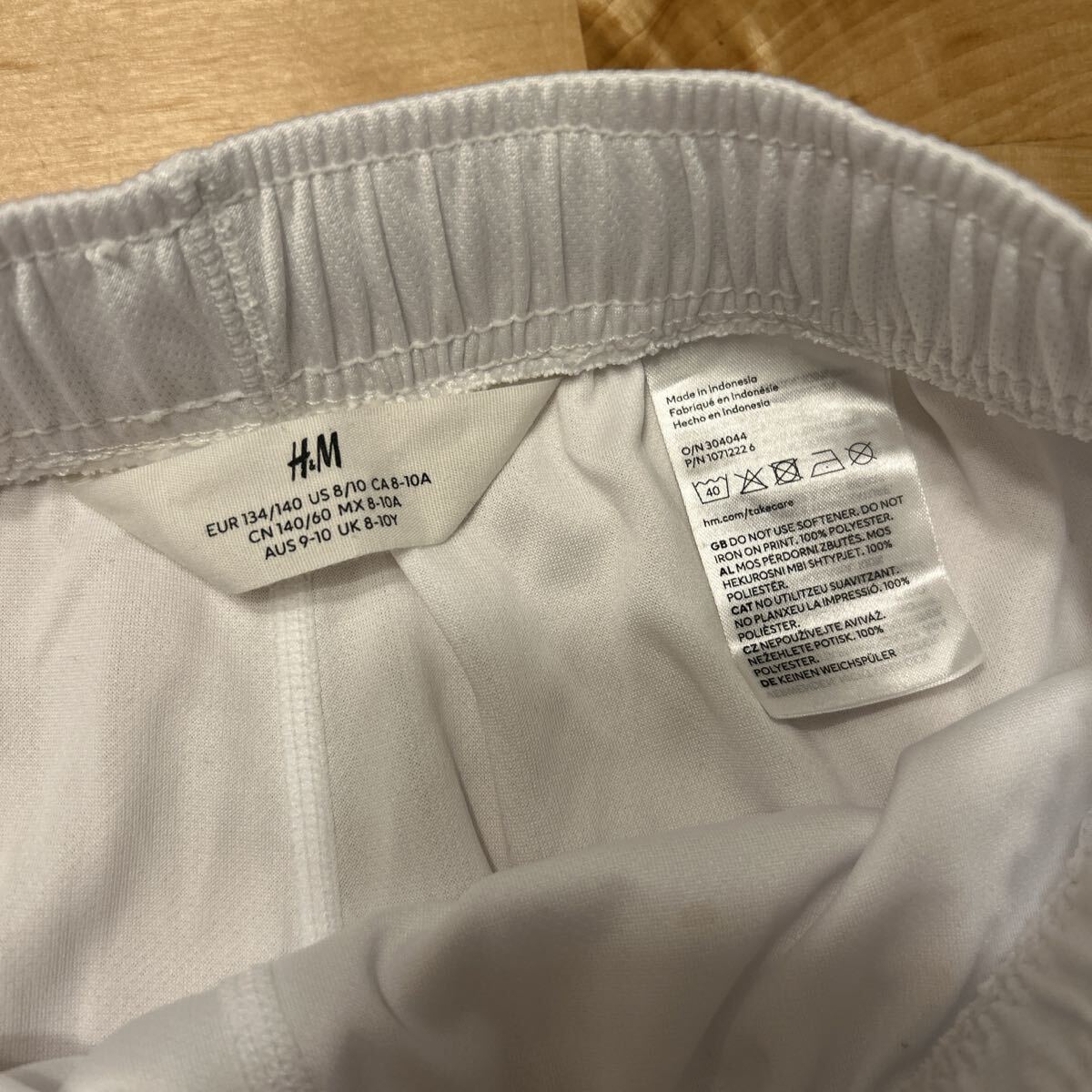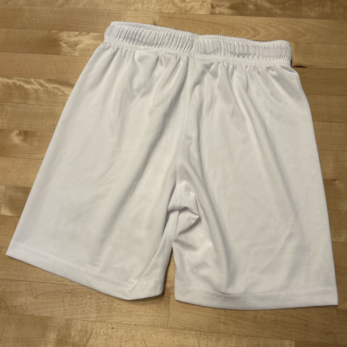 シンプルなホワイトのハーフパンツ、10番の番号入り。試着のみの未使用品です。最後の写真の通りのようなものがありました。他は全体的にきれいです。
