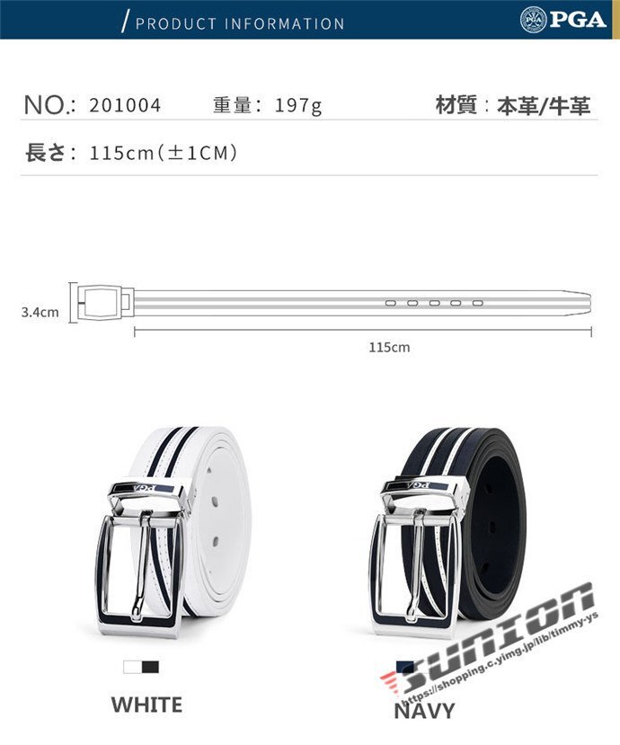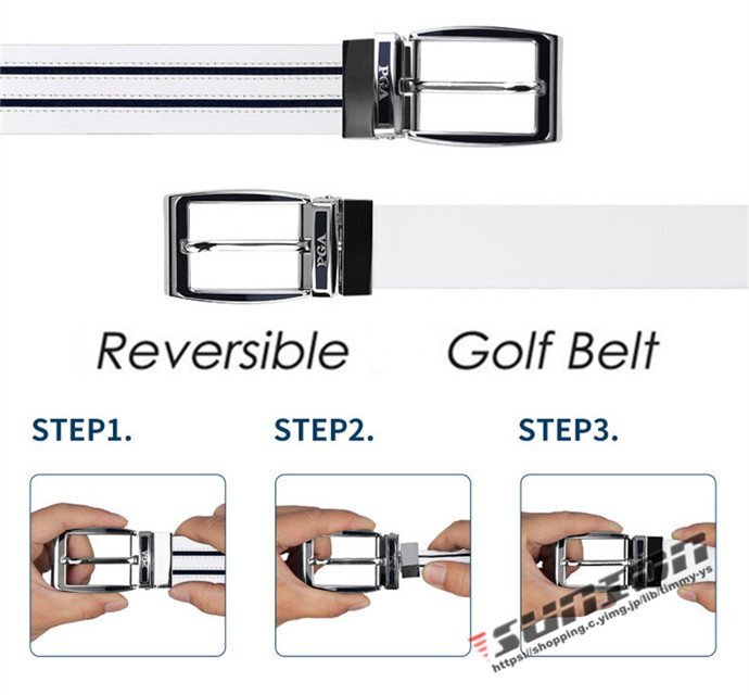 【商品特徴】◎オシャレ度2倍&お得感も2倍◎サイズ調整が超簡単◎バックル部分の留め具を外し、ベルト部分をハサミでカットし付け直すだけでOK◎2WAYで使えるリバーシブル◎表と裏を色違いで使えるので、お得感もありとても便利◎ゴルフシーンだけでなく様々な着こなしのアクセントとして重宝すること間違いなし!【 商品スペック】●ブラント PGA●全 長 約115cm、幅約3.4cm●重 量 約197g●素 材/ 本革 牛革●カラー/ WHITE/NAVY●対 象/ メンズ