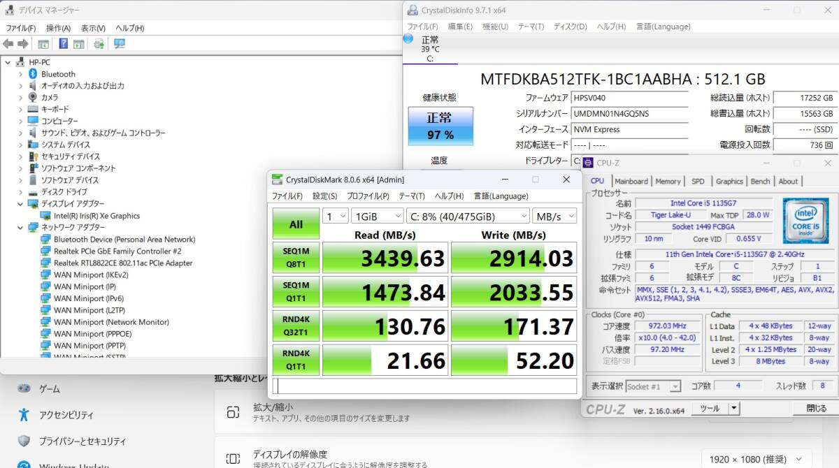 | CPU: 超高速 Intel 卓越性能 第11世代Core i5-1135G7 2.4Ghz、 4コア8スレッド (ターボ・ブースト利用時の最大周波数 4.2GHz) |