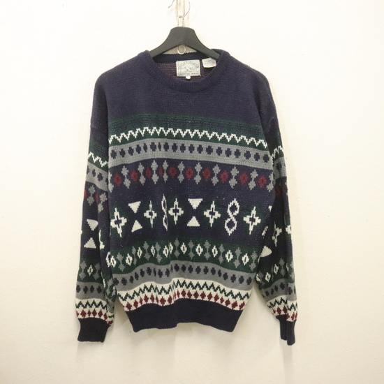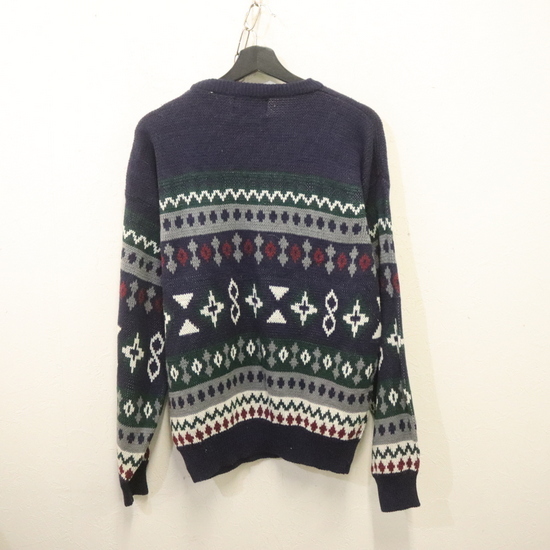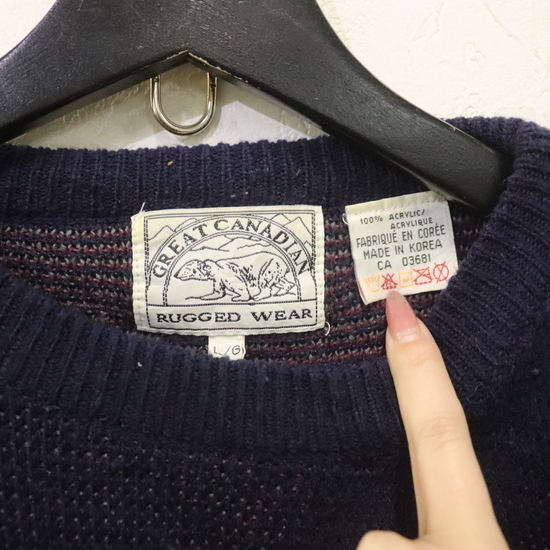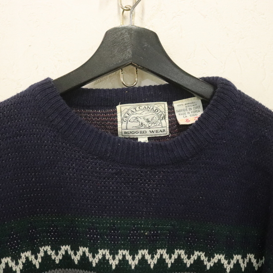 a973 80sビンテージ GREATCANADIAN アクリルニットセーター■1980年代製 表記Lサイズ ネイビー 柄 ネイティブ アメカジ ストリート 古着
