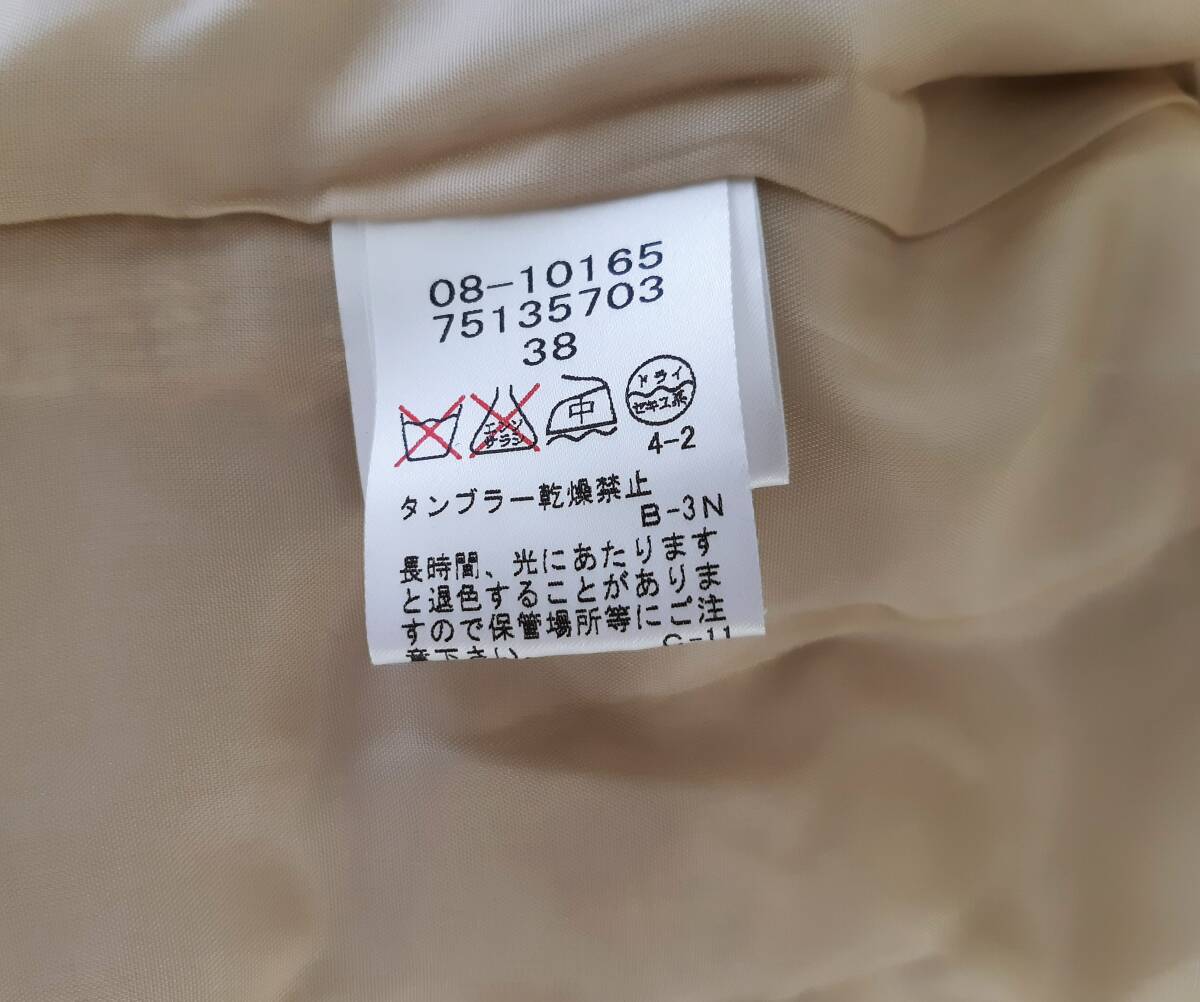 サイズ表示:38 ※ジャケット 総丈:約51.5㎝ 身幅:約44㎝ 肩幅:約37.5㎝ 袖丈(脇下計測):約40㎝ ※スカート 総丈:約58.5㎝ ウエスト幅:約34㎝ ※平置き採寸です。 ※素人採寸のため、多少の誤差はご了承願います。 | ||||||||