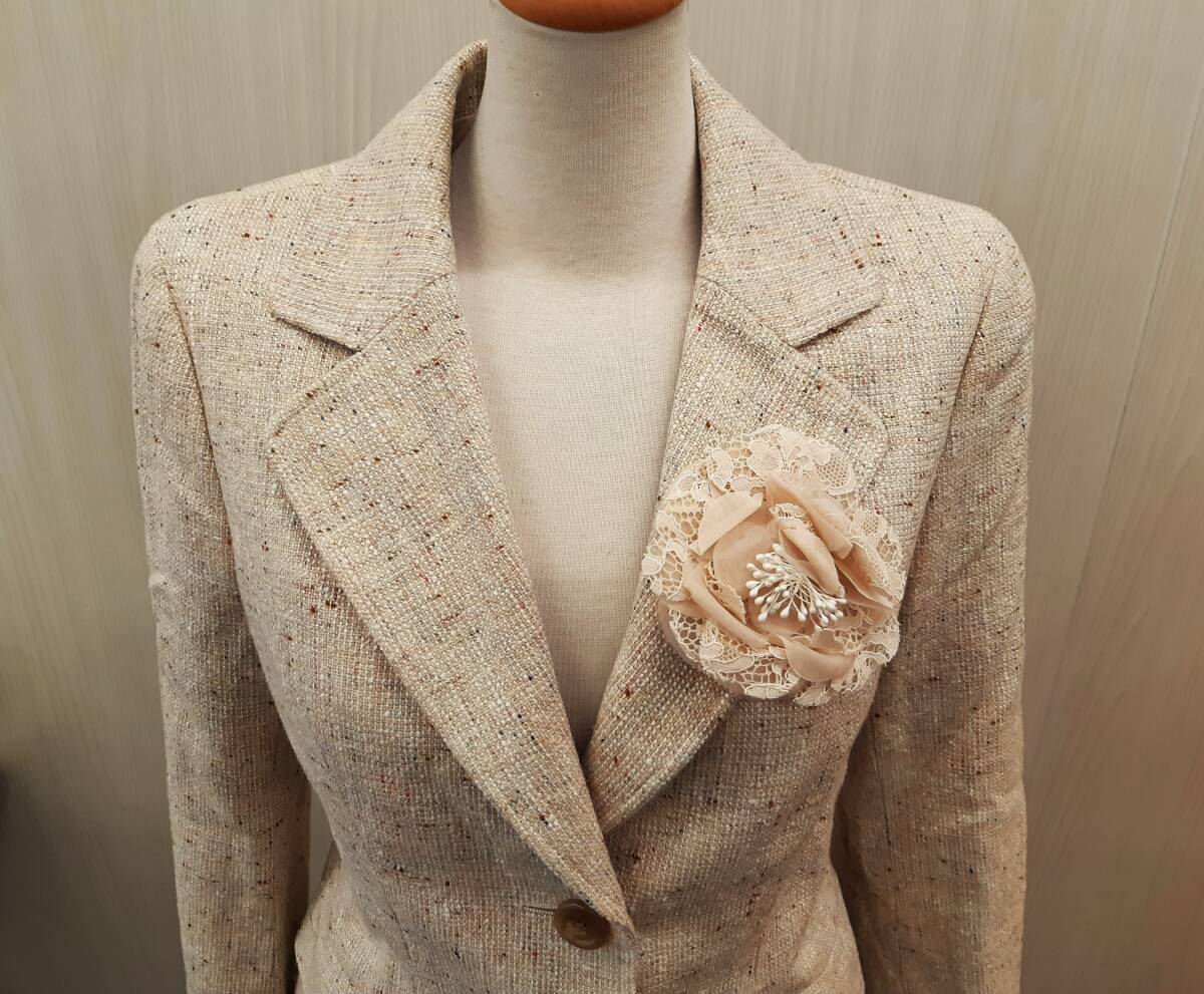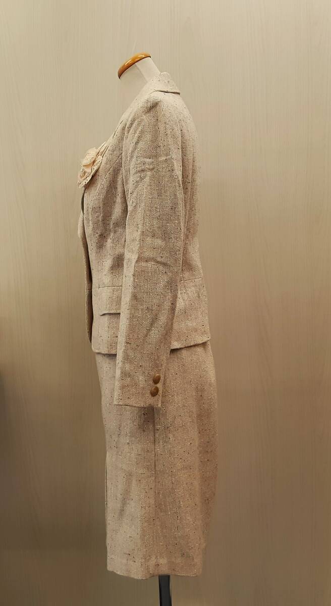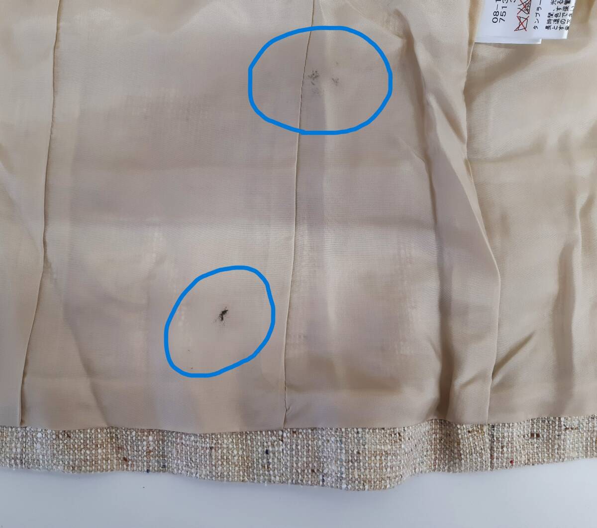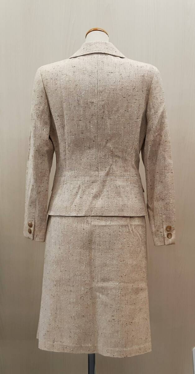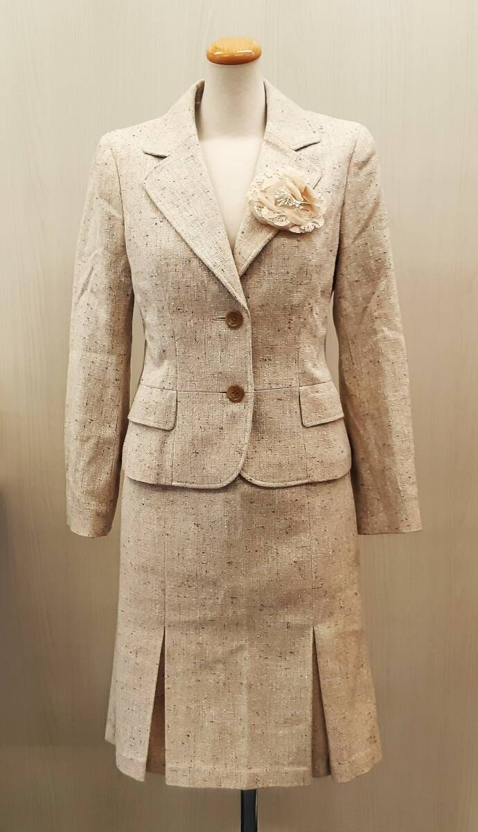 【色】 ベージュ系 【素材】 表地:毛37% 綿19% アクリル16% レーヨン14% 絹8% ナイロン5% ポリエステル1% 裏地:キュプラ ジャケットの裏地、後ろ左下に黒い汚れが2ケ所あります。 スカートの裏地、右ウエスト部分に黒い汚れがあります。 コサージュにつぶれがあります。 折しわたたみしわはご了承ください。 詳細は画像でご確認ください。 出来るだけ近い色を撮影していますが、表示する端末によって色の違いが出ることはご了承ください。 当社の商品につきましては中古品(または中古扱い)のため 下記の注意事項を合わせてご確認ください。 ※委託品のため詳細が分からない商品もございます。 ※商品説明に明記しておりますが、使用感がある場合がございます。 ※委託品・長期保管品のため、新品・未開封品であっても微細なキズや汚れがある場合がございます。 ※家電は動作確認済みですが全ての機能の長時間動作確認はしておりません。 ※工具や調理器具の実際の作業、調理等での確認はしておりません。 ※商品の写真はなるべく実物に近いものを選んでいますが、PC環境により映り具合や色合いなど見え方が異なる場合もございます。 ※現状でのお渡しのため、商品の状態などの理由による返品、ご返金には応じかねますのでご了承ください。 ※商品が小さな部品、電池等を含む場合は誤飲防止のため、小さなお子様の手の届かないところでのご使用及び保管をお願いいたします。 気になることがありましたらお気軽にご質問ください。 | ||||||||