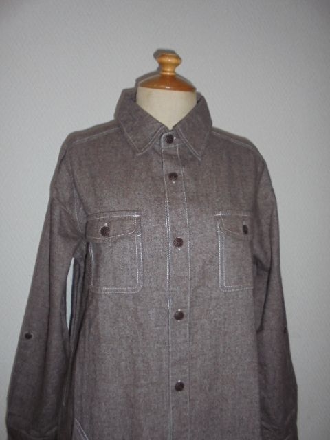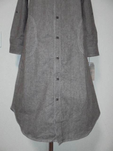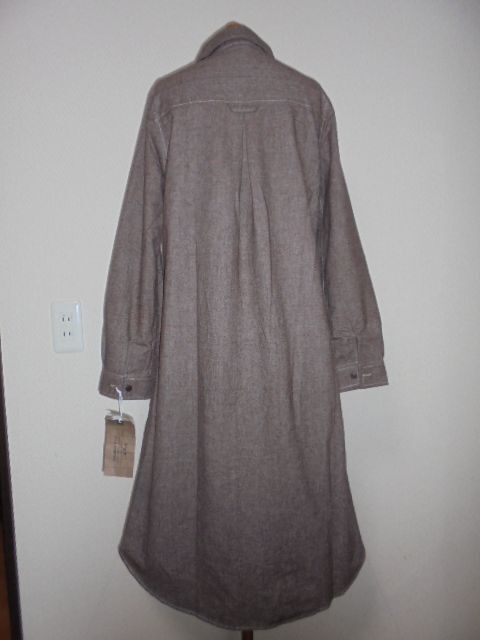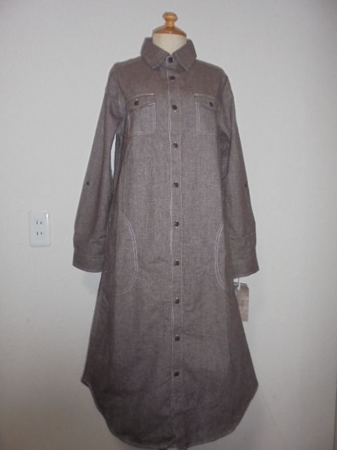未使用タグ付。D・g・y霜モカ茶ステッチ飾りロングシャツOP