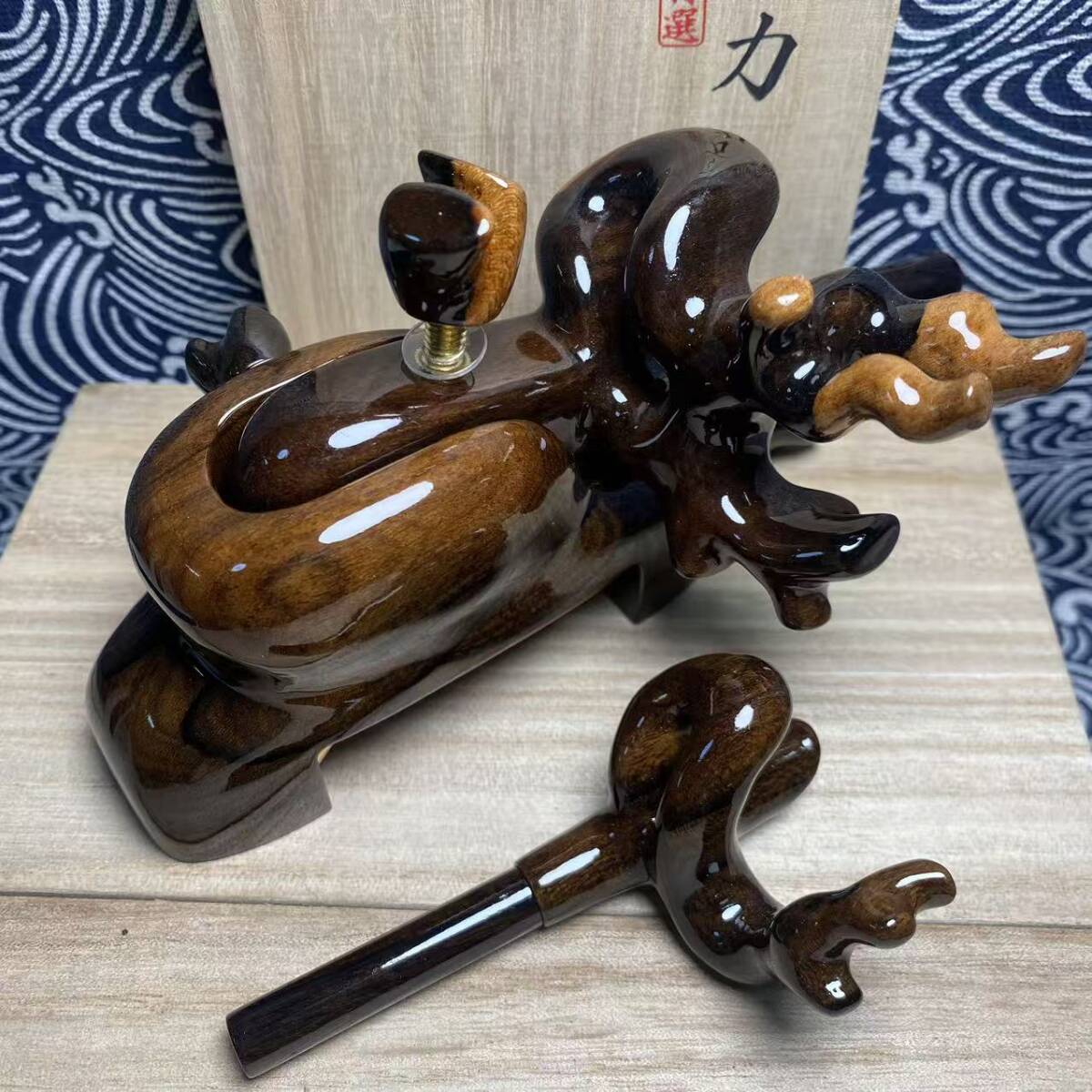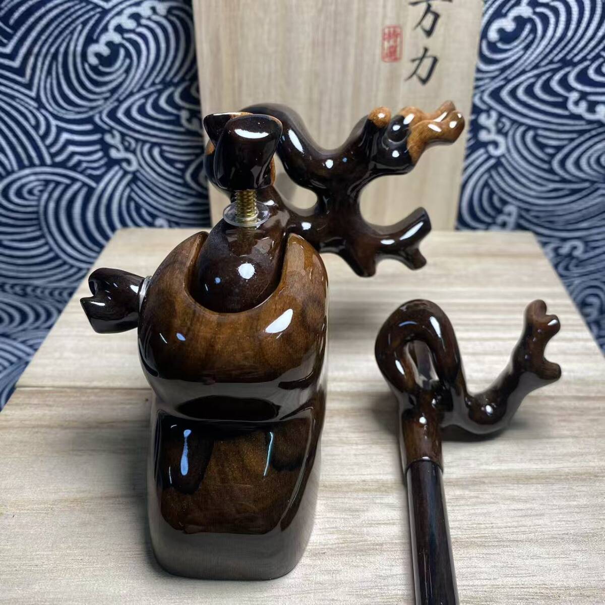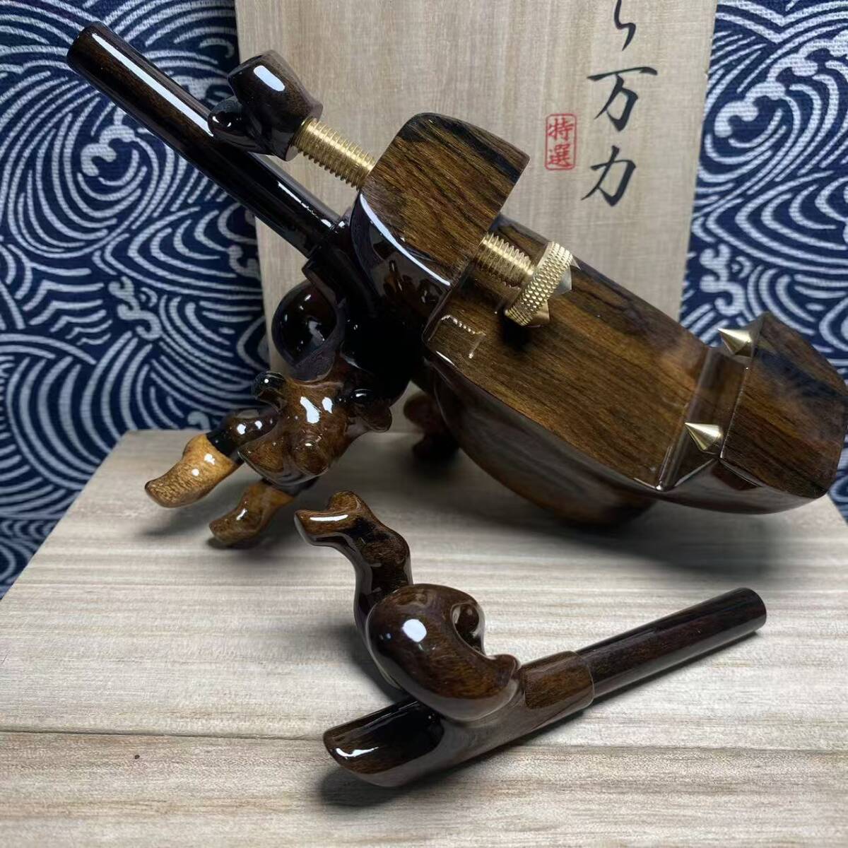 ★黒柿★ 天然木 大砲万力 収納袋付き 竿受あり ヘラブナ 特選品 銘木 208