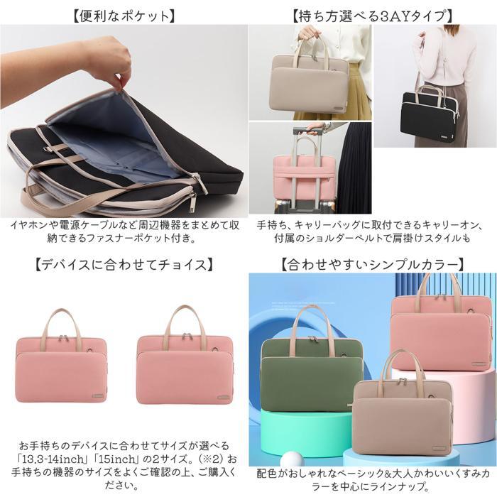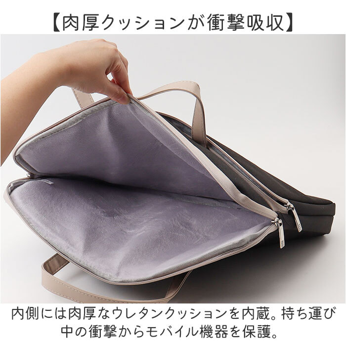 | 商品説明 | ・・【ノートPCもタブレットもOK!】 ・薄型PCやタブレットをすっぽり収納!シンプル&スリムな「パソコンショルダーバッグ」が登場。 ・【機器の取り出しがスムーズ】 ・開口部は側面まで大きく開くダブルファスナーを採用し、PCやタブレットの取り出しがスムーズ。 ・【肉厚クッションが衝撃吸収】 ・内側には肉厚なウレタンクッションを内蔵。持ち運び中の衝撃からモバイル機器を保護。 ・【ベルベットライクな肌触り】 ・繊細なPC本体やタブレットの液晶画面を傷つけない!ケース内側は指触り滑らかな起毛素材。 ・【便利なポケット】 ・イヤホンや電源ケーブルなど周辺機器をまとめて収納できるファスナーポケット付き。 ・【持ち方選べる3AYタイプ】 ・手持ち、キャリーバッグに取付できるキャリーオン、付属のショルダーベルトで肩掛けスタイルも ・【デバイスに合わせてチョイス】 ・お手持ちのデバイスに合わせてサイズが選べる「13.3-14inch」「15inch」の2サイズ。 ・(※2)お手持ちの機器のサイズをよくご確認の上、ご購入ください。 ・【合わせやすいシンプルカラー】 ・配色がおしゃれなベーシック&大人かわいいくすみカラーを中心にラインナップ。 ・【ポケット仕様】 ・前面:ファスナーポケット×1(内側:オープンポケット×2、ペンホルダー×2) ・背面:ファスナーポケット×1 |