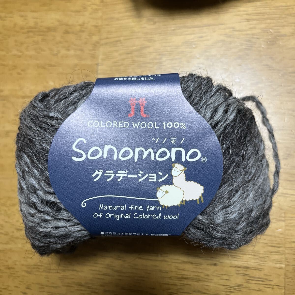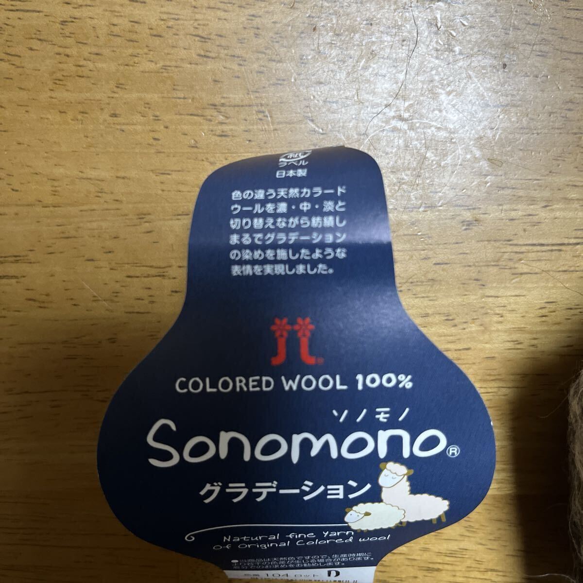 色の違う天然カラードウールを濃、中、淡と切り替えながらグラデーションした毛糸