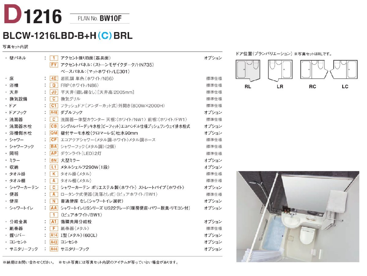 | ◎LIXILホテル向け洗面・便器付ユニットバス[1216サイズ] BLCW-1216LBD+H 即決価格は、写真セット価格1.544.580円のなんと 69%OFFで 526.701円【消費税込】 ◆据付必要寸法1310×1680×2494㎜。 ◆洗面器・便器付きユニットバスです。 ◆バスルームの魅力をアップする鏡面のアクセントパネルで豪華な雰囲気に。 ◆洗面カウンター一体で、豪華で清掃性もアップ。 ◆浴槽と洗い場床が分割構造、ラクに搬入・ラクに施工。 ◆低床設置で、浴室への出入りがしやすい、浴室入口段差50㎜。 ◆浴槽への出入りがしやすい、またぎ高さは約450㎜。 ◆洗面側水栓は、シングルレバー水栓・エコハンドル。 ◆浴槽側水栓は、温度調整がしやすいサーモ機能付き水栓にエコアクアシャワー。 ◆お手入れのしやすさに配慮した、シャーワートイレが付きました。 ◆照明は、ダウンライト照明(LED)2灯です。 ◆『フラッシュドア』アンダーカット式。外開き。 ◆ドア位置は4通り(RL・RC・LR・LC)から選択できます。 ◆天井換気扇は付いていません。 | |