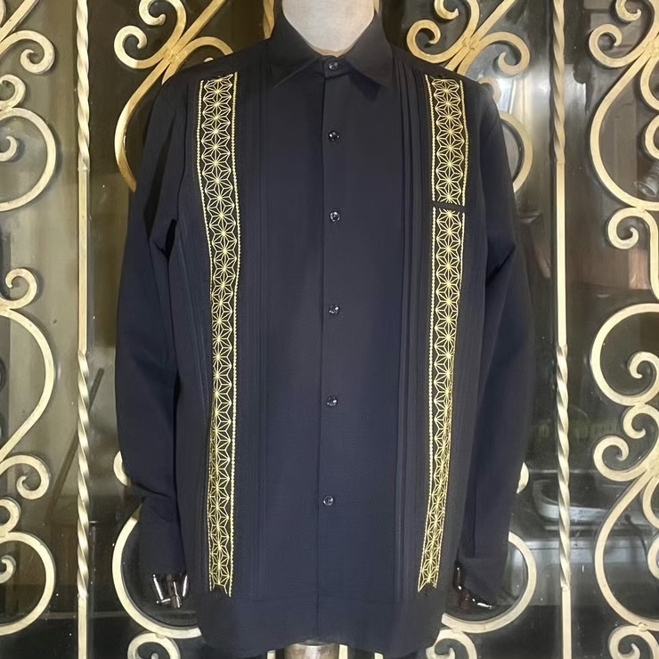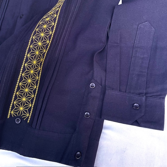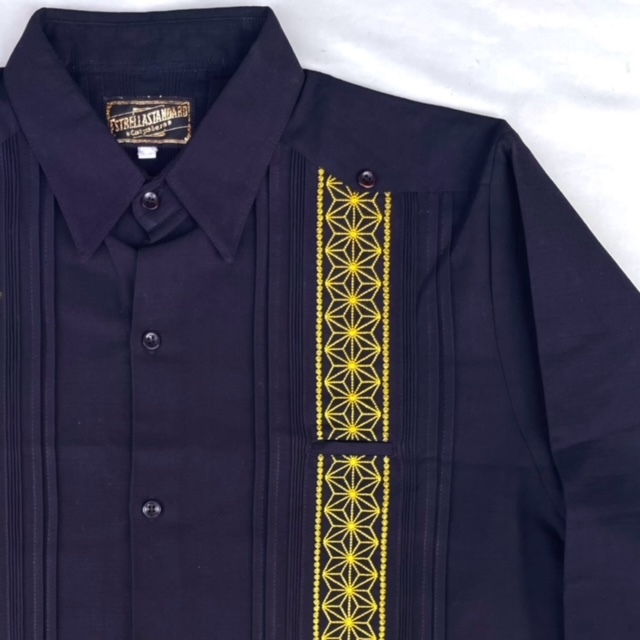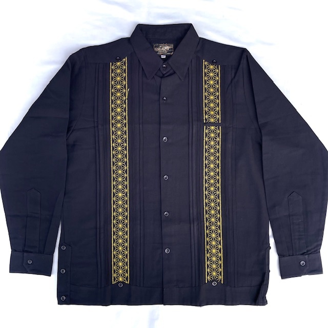 Estrella Standard L/S GUAYAMISA ASA 麻の葉柄 長袖キューバシャツ ブラック色