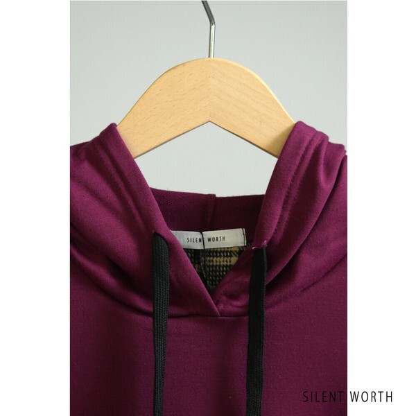 ◆商品名:裏毛×起毛 チェック柄 ロングテール パーカー チュニック(パープル系)