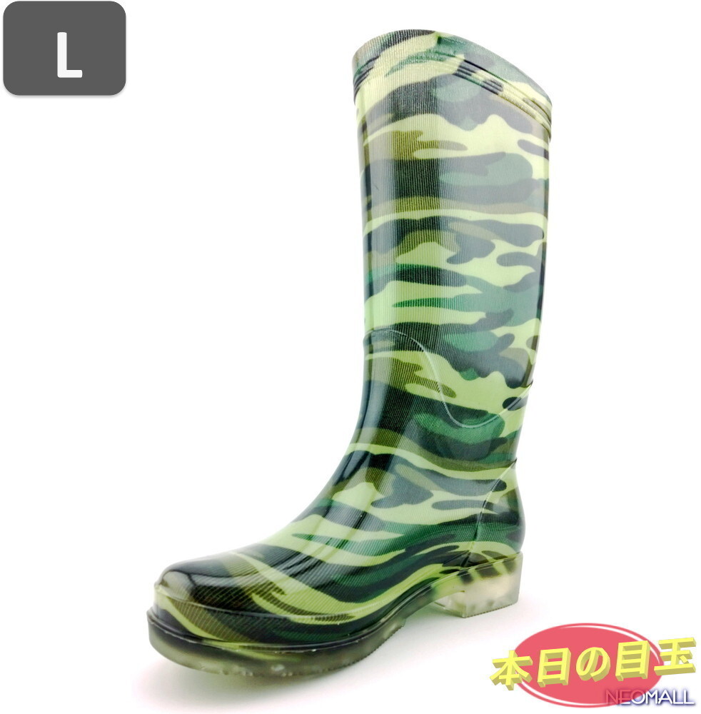 1スタ☆ レインブーツ【504】 Lサイズ7 グリーン 迷彩 防水 レインシューズ レディース 雨靴 長靴 梅雨対策 防滑 防水 雨 雪 晴れ兼用