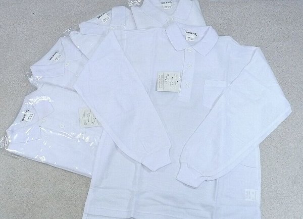 80PS06▲【未開封】BUD IN BUD・長袖白ポロシャツ・150サイズ 5着セット・学生服 キッズ 学校 通学 児童 スクール 子供