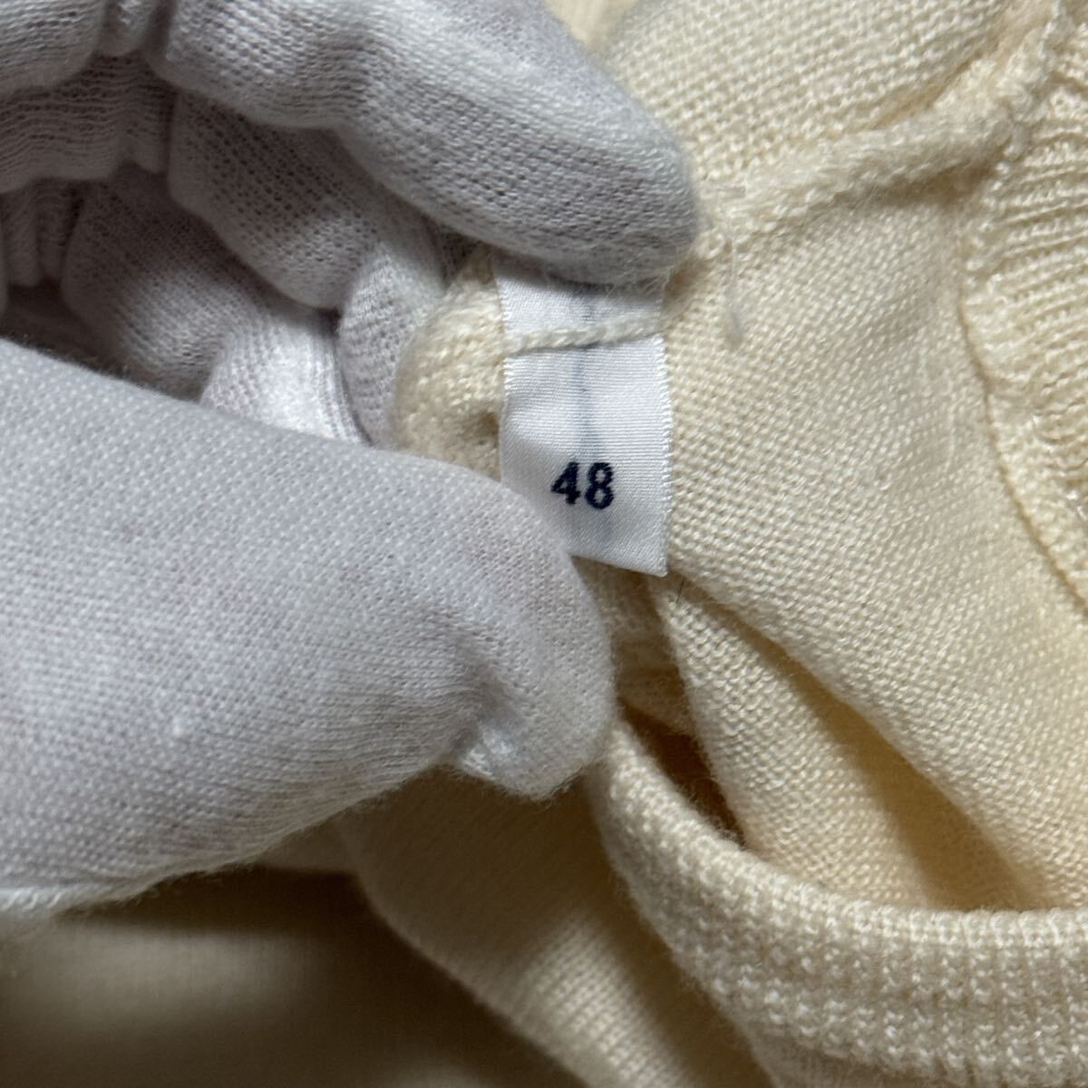 上品なアイボリー系カラーで、ジャケットのインナーや綺麗めカジュアルにも相性抜群。