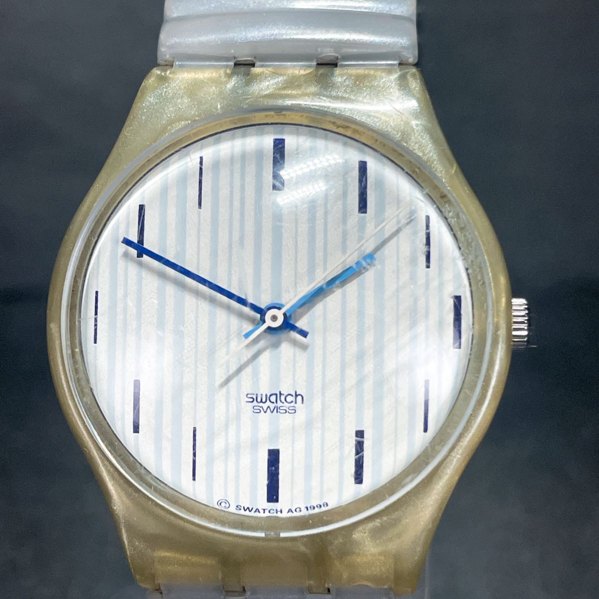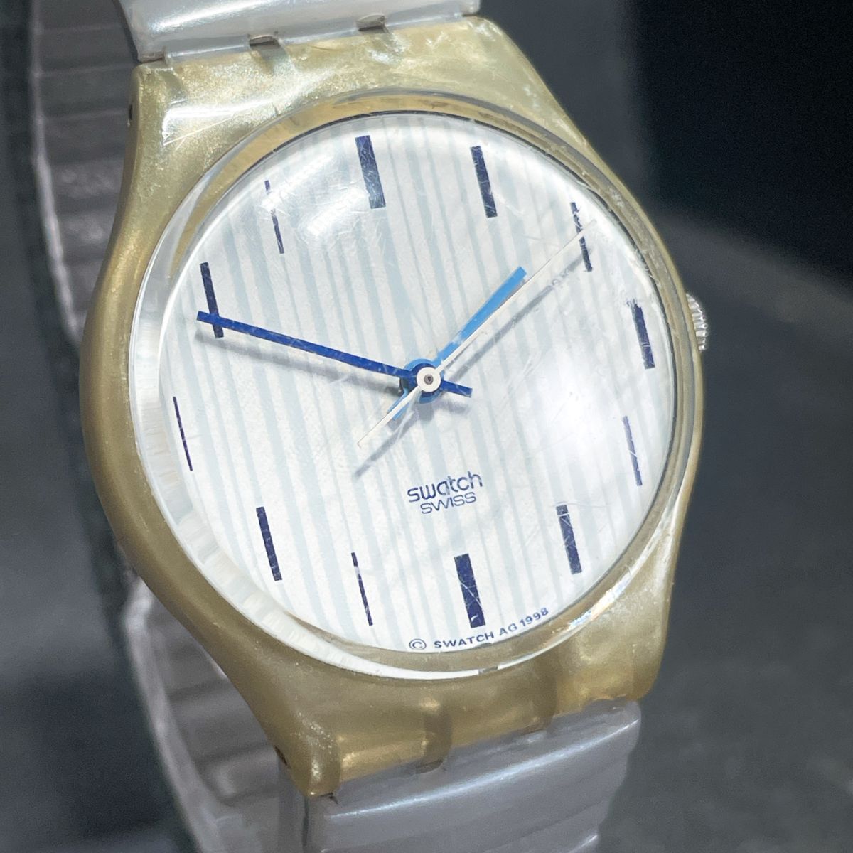 Swatch スウォッチ Gelantine GM149 腕時計 アナログ クオーツ 3針 伸縮バンド ホワイト スケルトン 新品電池交換済み 動作確認済み
