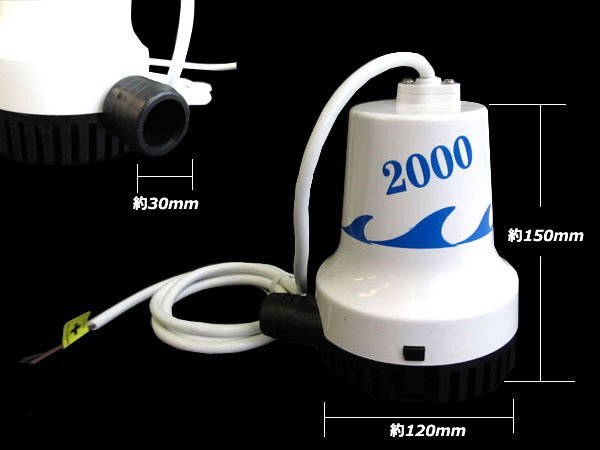 海水対応! 12V用 ビルジポンプ 2000GPH 毎分 汲み上げ 海水/汚水を船外に排出する 排水 船底