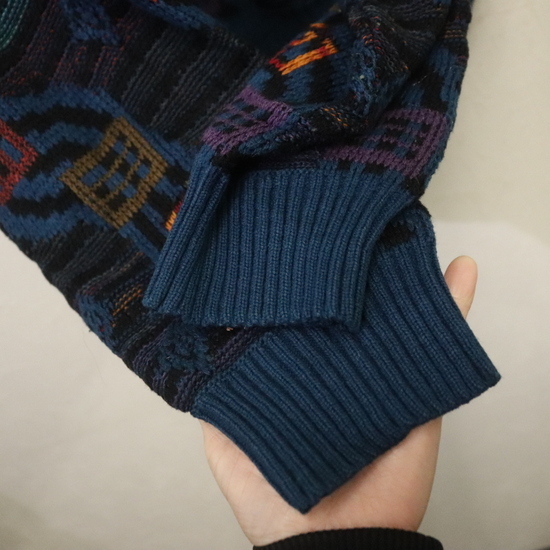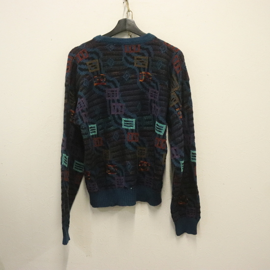 商品名 a982 80sビンテージ EXPRESSIONS WORLDWIDE アクリルニットセーター■1980年代製 表記Mサイズ ブルー マルチカラー 柄 アメカジ