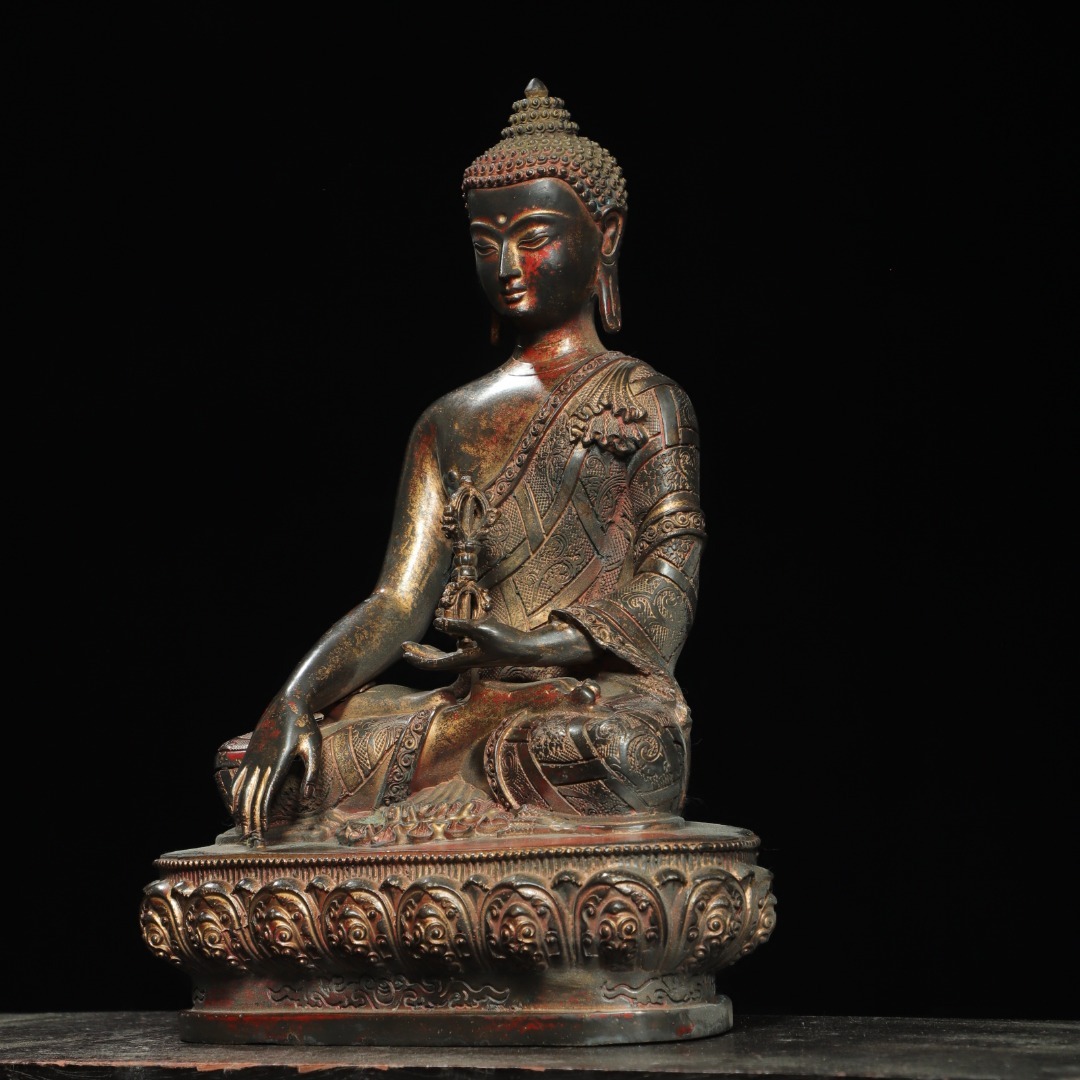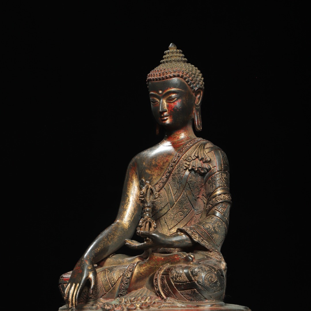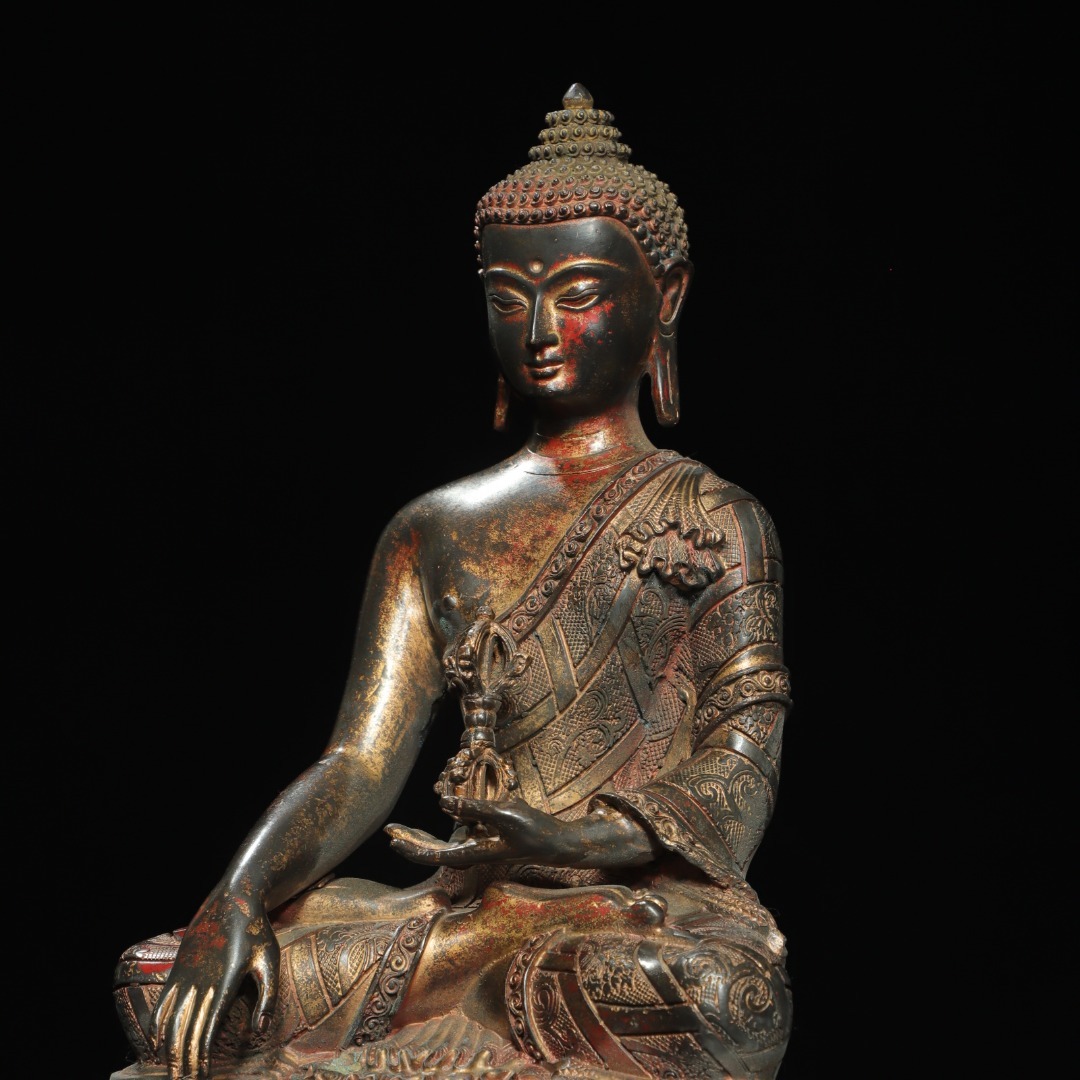 館蔵 清時代 古銅彫 泥金 宝来如来 仏像 供養仏 古銅器 銅製品 時代物 中国古美術 古美味 蔵出