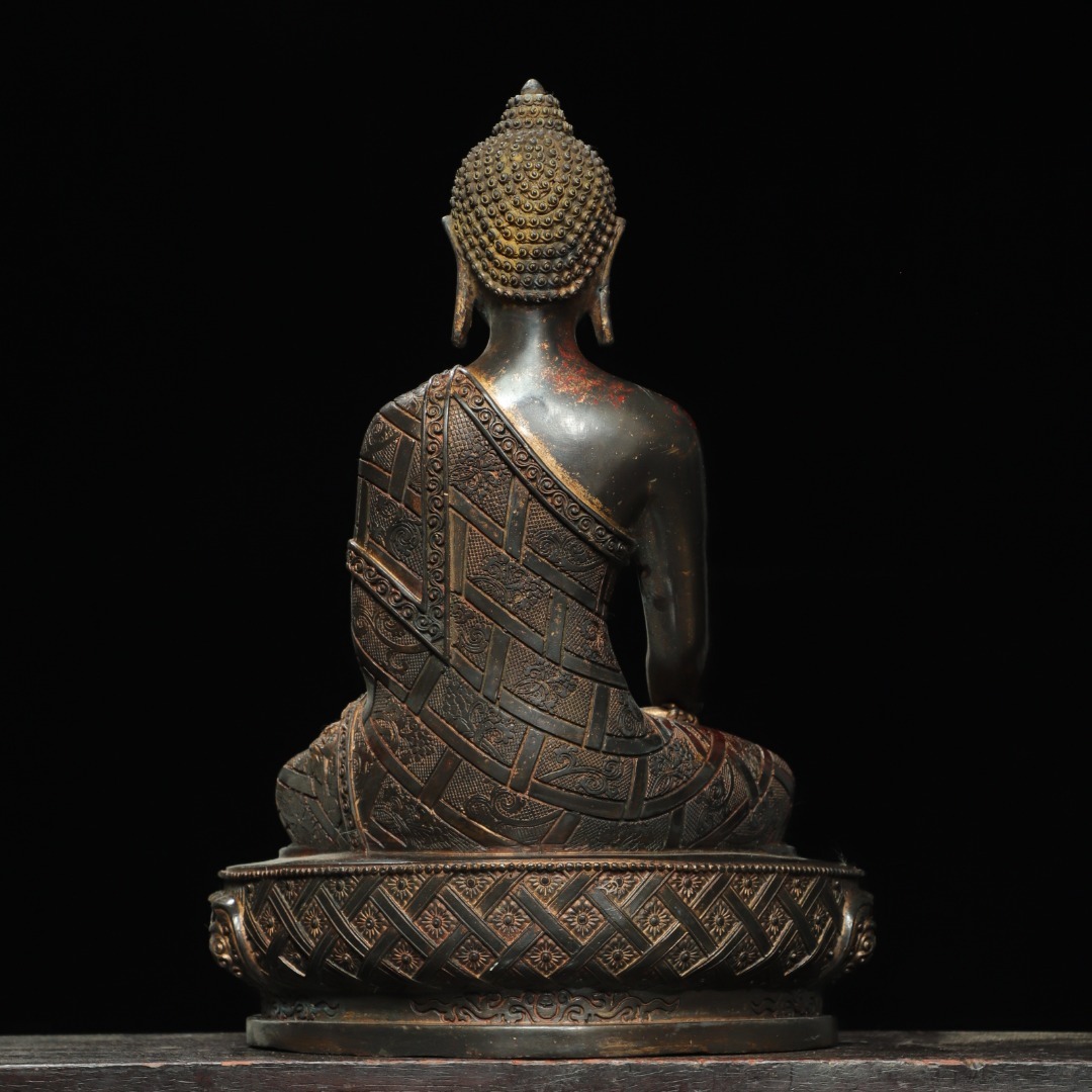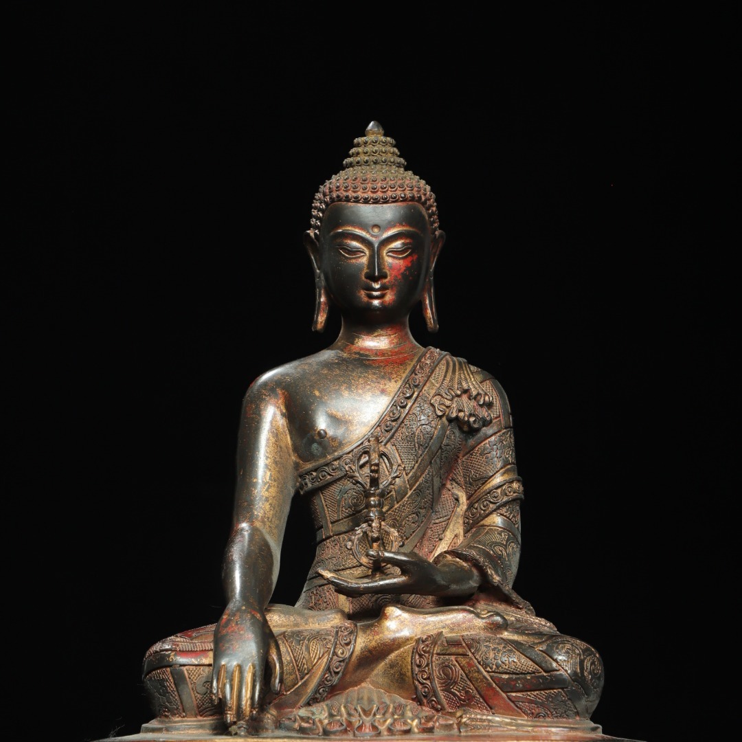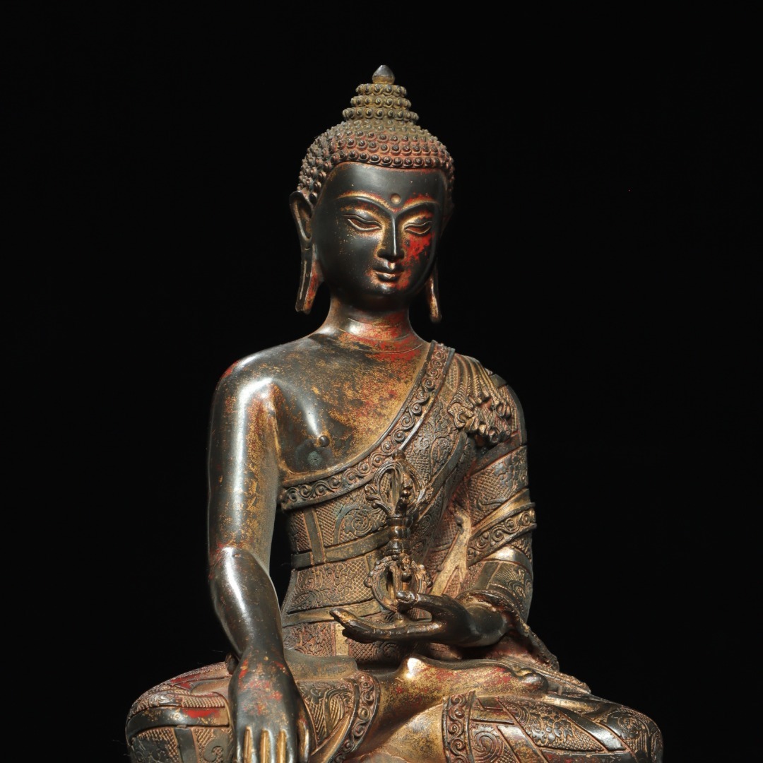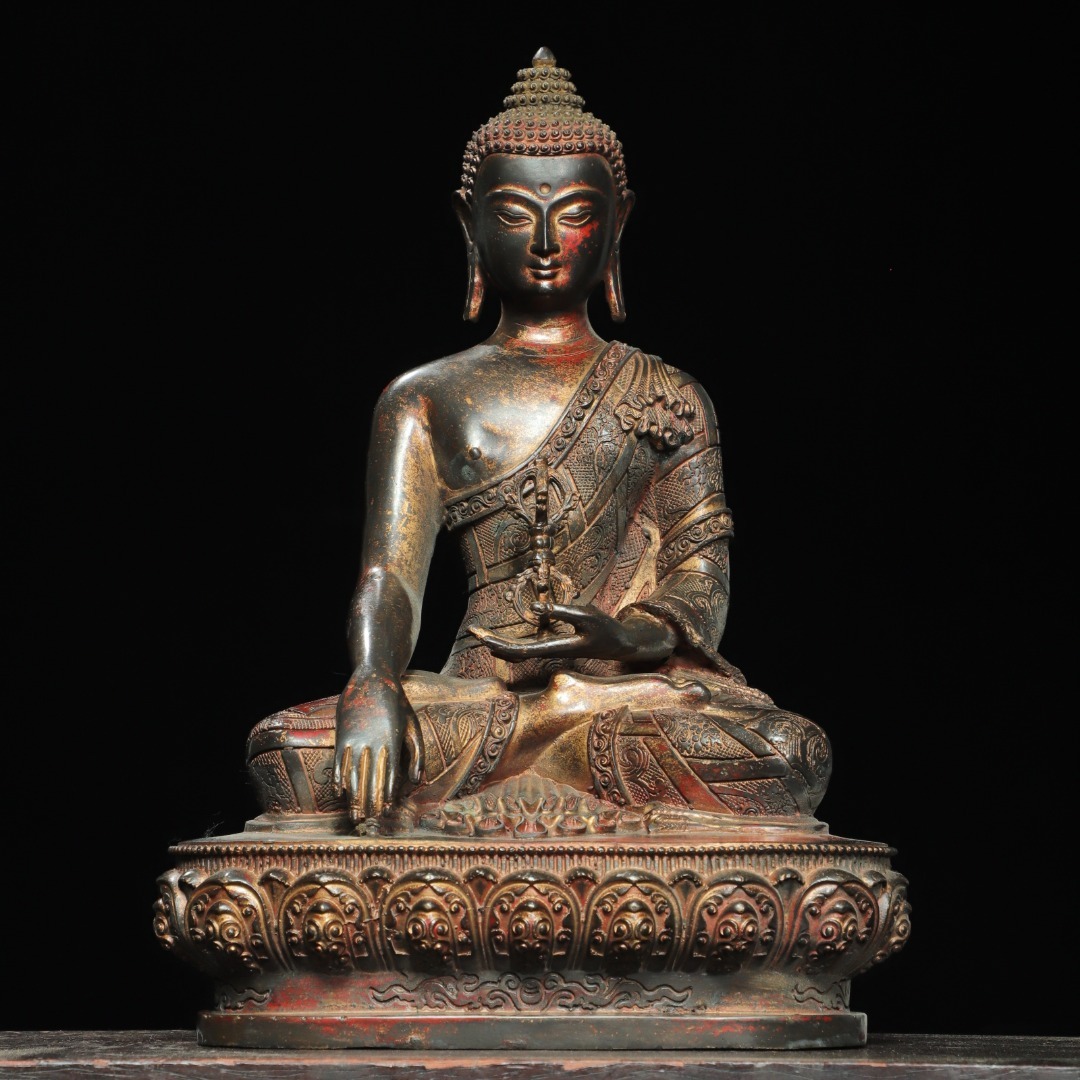 館蔵 清時代 古銅彫 泥金 宝来如来 仏像 供養仏 古銅器 銅製品 時代物 中国古美術 古美味 蔵出