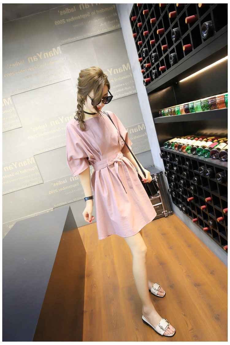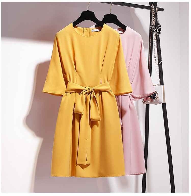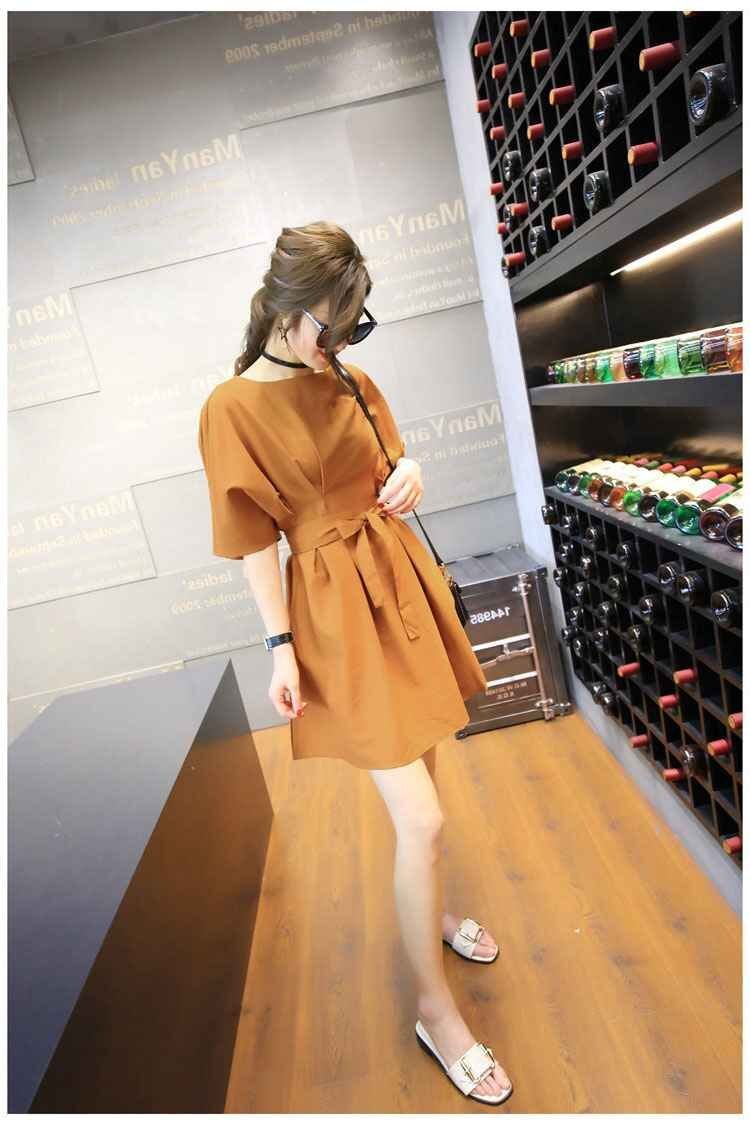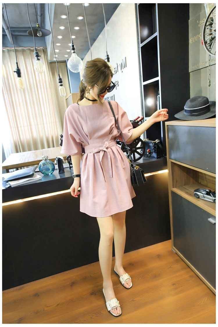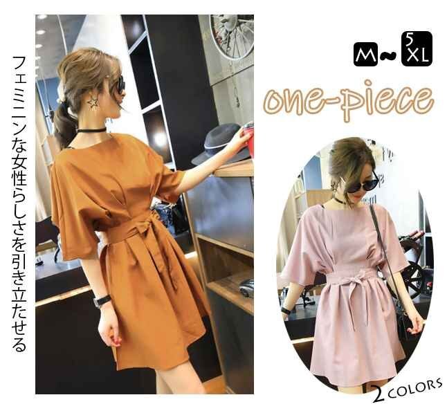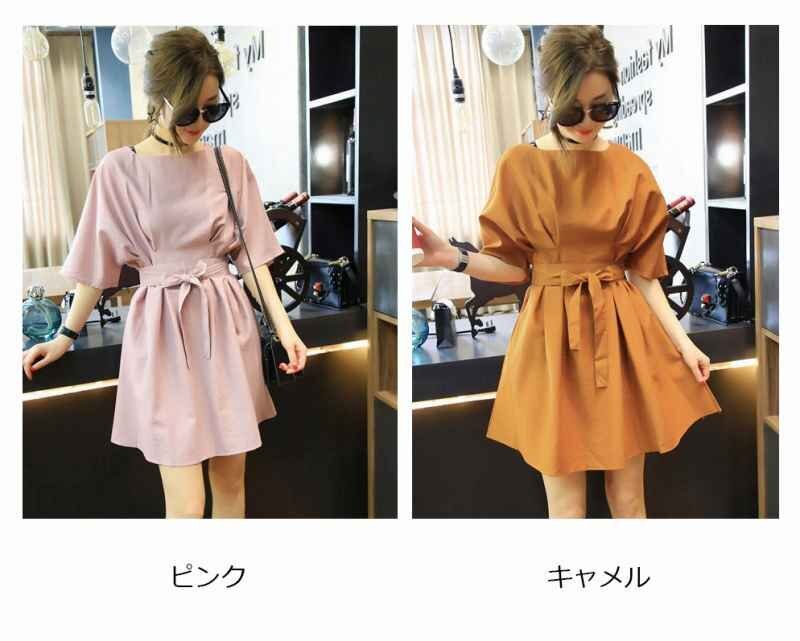 大きめのラウンドネックはデコルテ美人を叶えてくれて、ウエストはベルトで調節して、メリハリをつければ◎。袖もふんわりデザインで、二の腕や上半身の体系カバーができます。