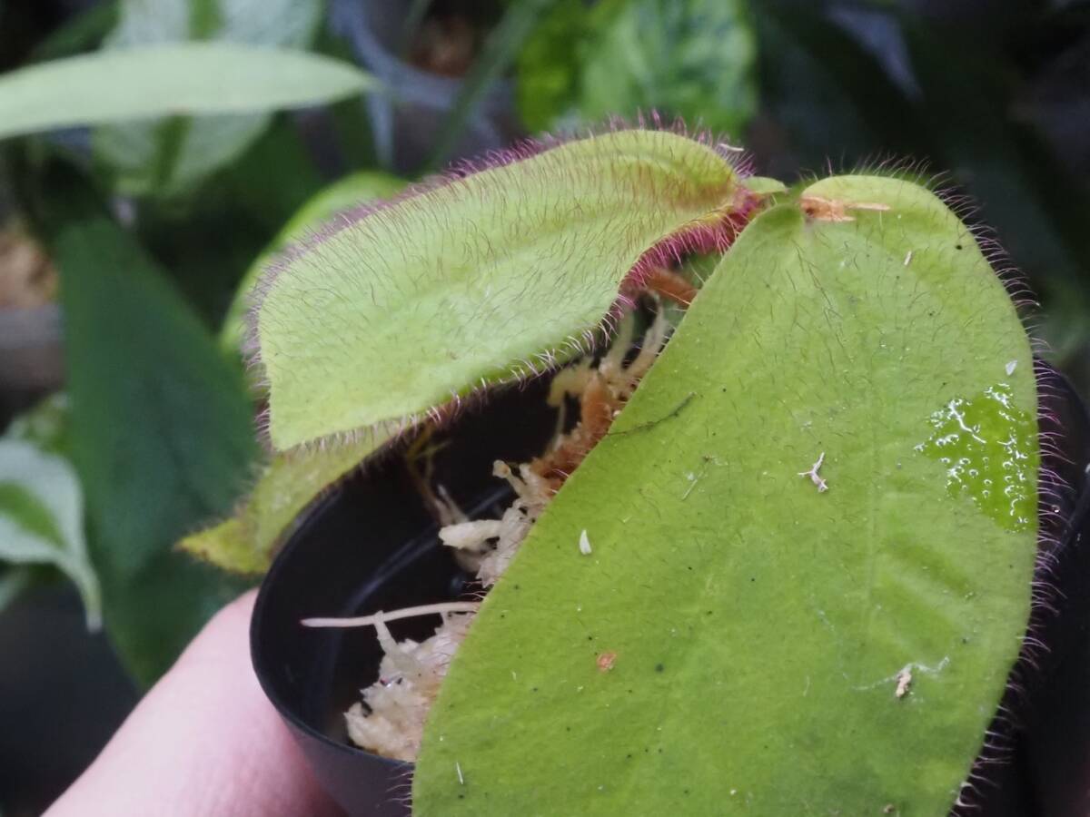 赤い毛が葉全体に生えています。