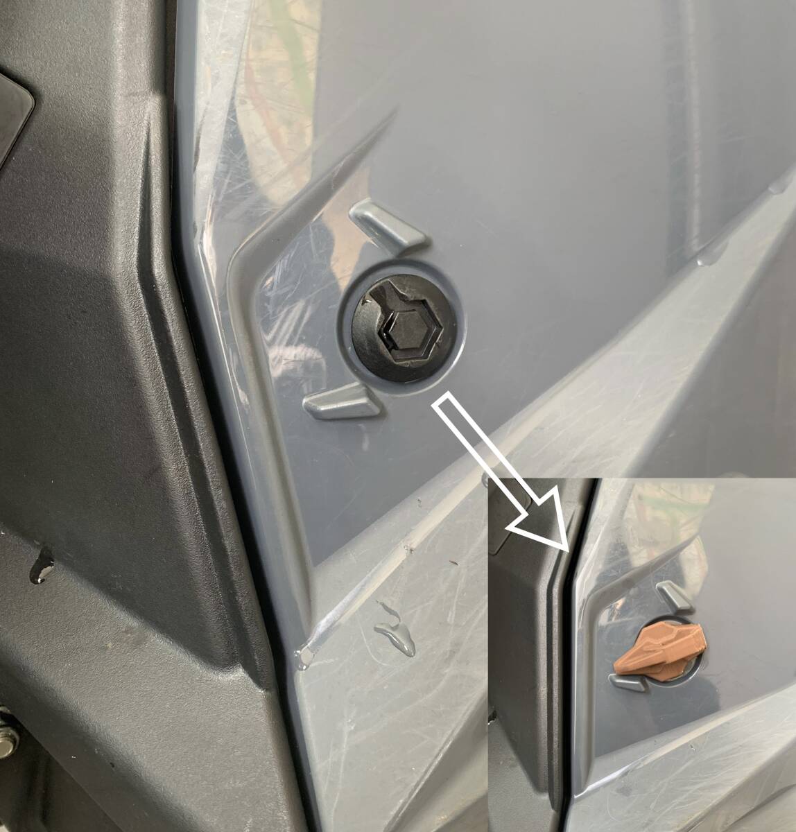カウルに装着時は潤滑油で滑りを良くしてください。
