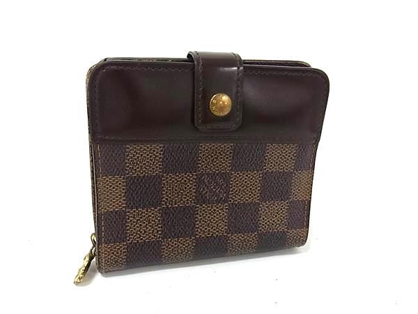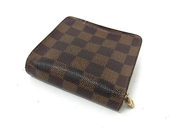 1円 LOUIS VUITTON ルイヴィトン N61668 ダミエ コンパクト ジップ 二つ折り 財布 ウォレット 小銭入れ 札入れ ブラウン系 FQ3134