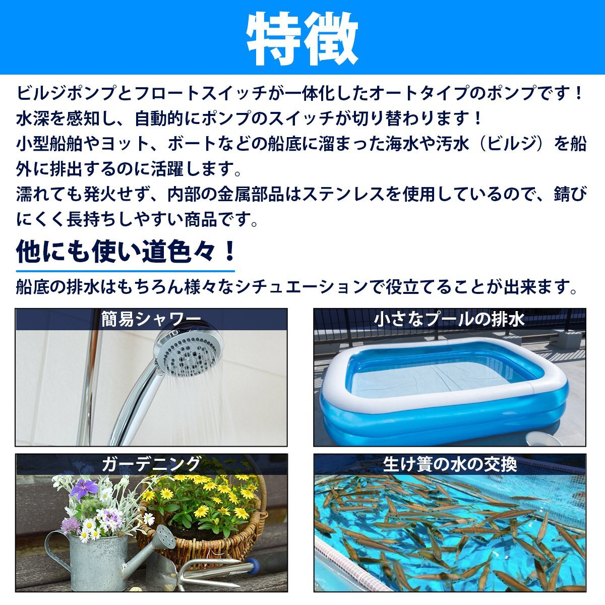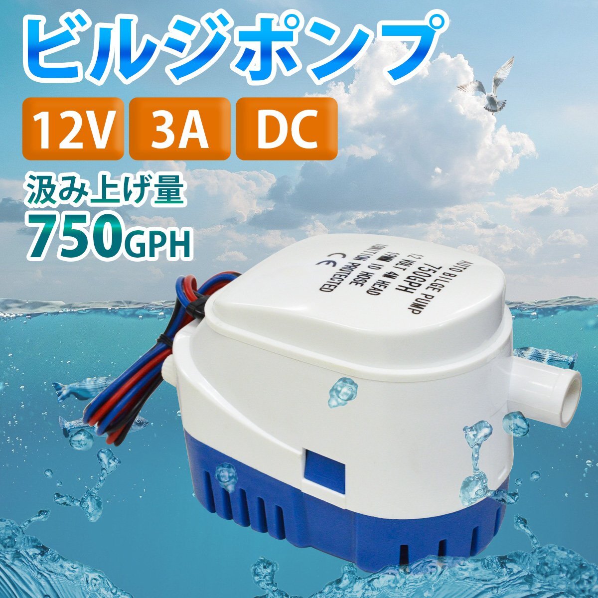 【送料無料】12V ビルジポンプ 750GPH フロート スイッチ 一体型 毎分47L 水中 ポンプ 船 ボート ヨット 船舶 漁船 汲み上げ 自動排水
