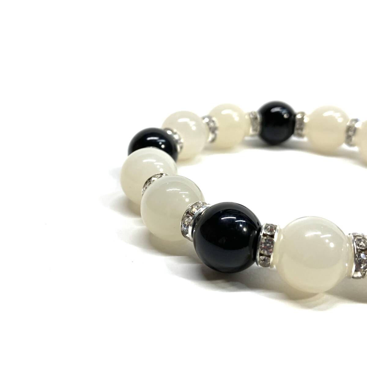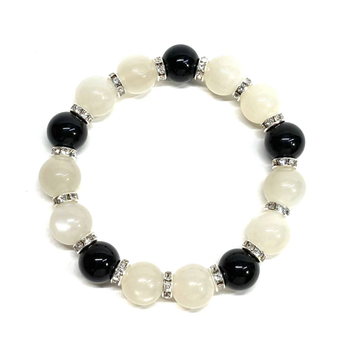 ムーンストーン&オニキス パワーストーン ブレスレット 12mm 天然石ブレス (シルバー) 数珠ブレス メンズ・レディース 男性 女性 浄化♪