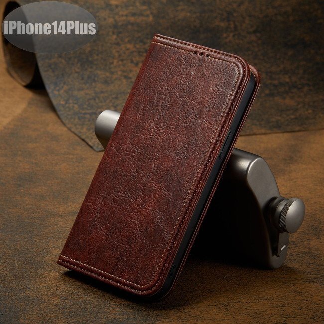 iPhone14Plus ケース PUレザー おしゃれ スマホケース スマホカバー ブラウン 耐衝撃 衝撃吸収【n279】