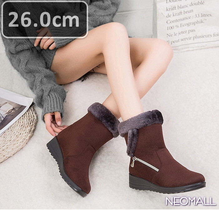 レディース スノーシューズ 【956】 ブラウン 26.0cm ムートンブーツ スニーカー ウィンターブーツ 裏起毛 防水 防寒 防滑 冬用靴 綿靴