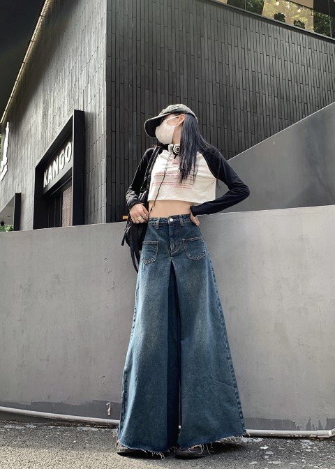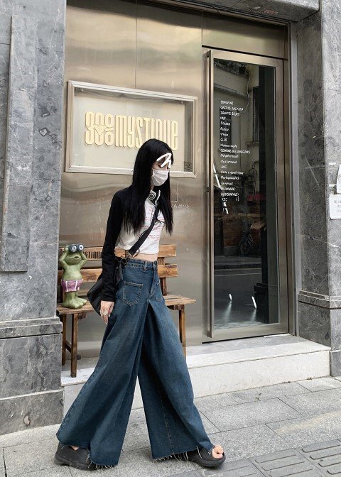 S 着丈:101cm ウエスト:64cm わたり幅:68cm ヒップ:91cm 裾幅:94cm