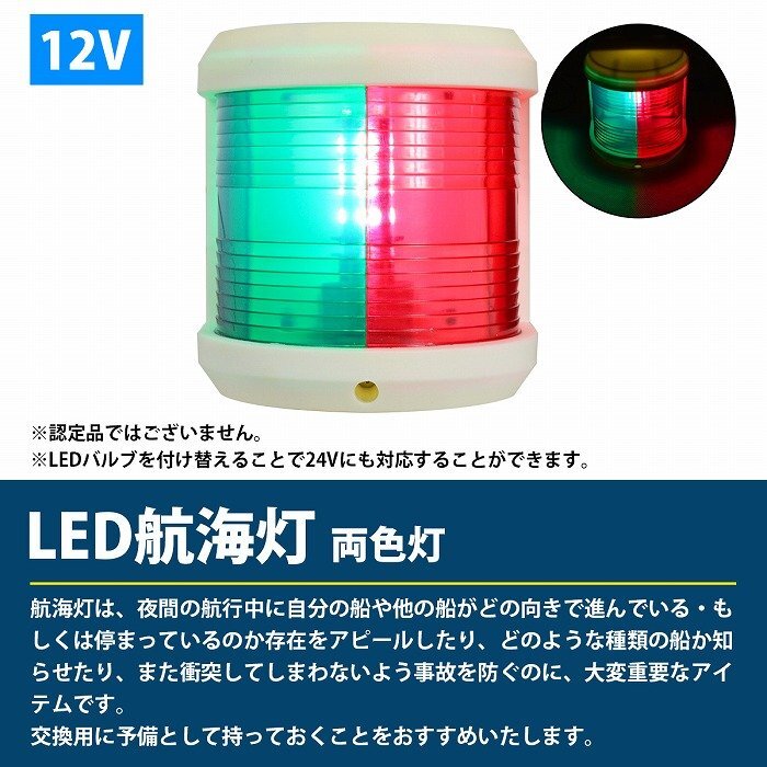 【送料無料】LED 航海灯 両色灯 左舷&右舷 左右 マスト灯 夜間灯 12V ボディカラー/ホワイト 白 ボート 船 船舶 信号(バルブ交換24V対応)