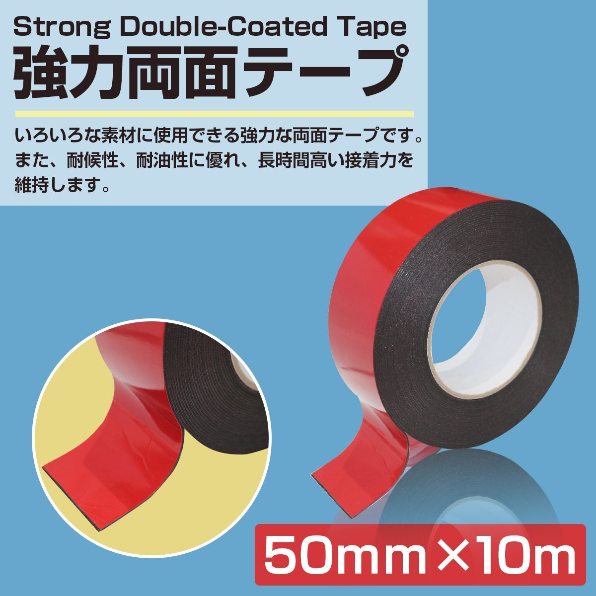 [幅50mm 長さ10m] 強力 両面テープ 厚さ1mm 屋外 屋内 車 バイク DIY エアロ ウイング スポイラー 外装 内装 5cm ブラック
